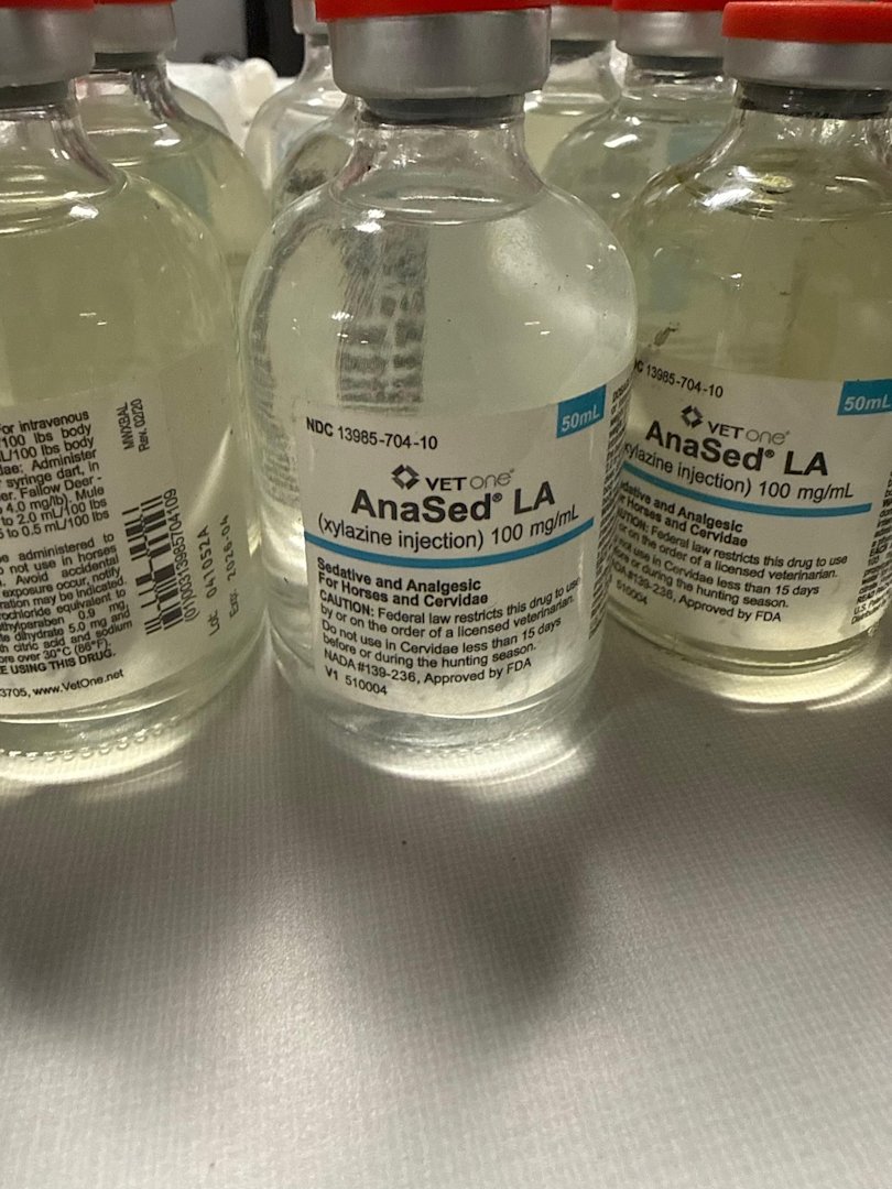Bottles of counterfeit xylazine (a veterinary tranquilizer) were also found at the scene.