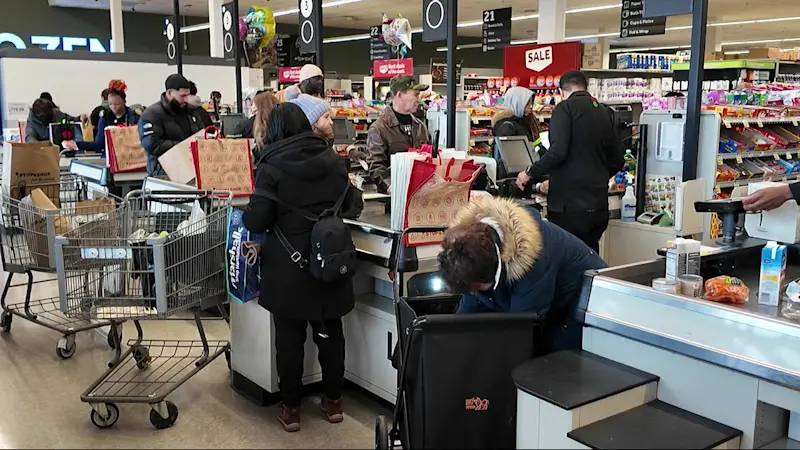 Shoppers flock to grocery stores to pick up essentials ahead of the storm