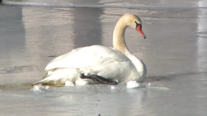 Norwalk fire crews rescue swan stuck in frozen river for second time
