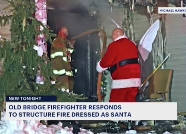 Old Bridge Santa Claus fights fire dressed in red suit