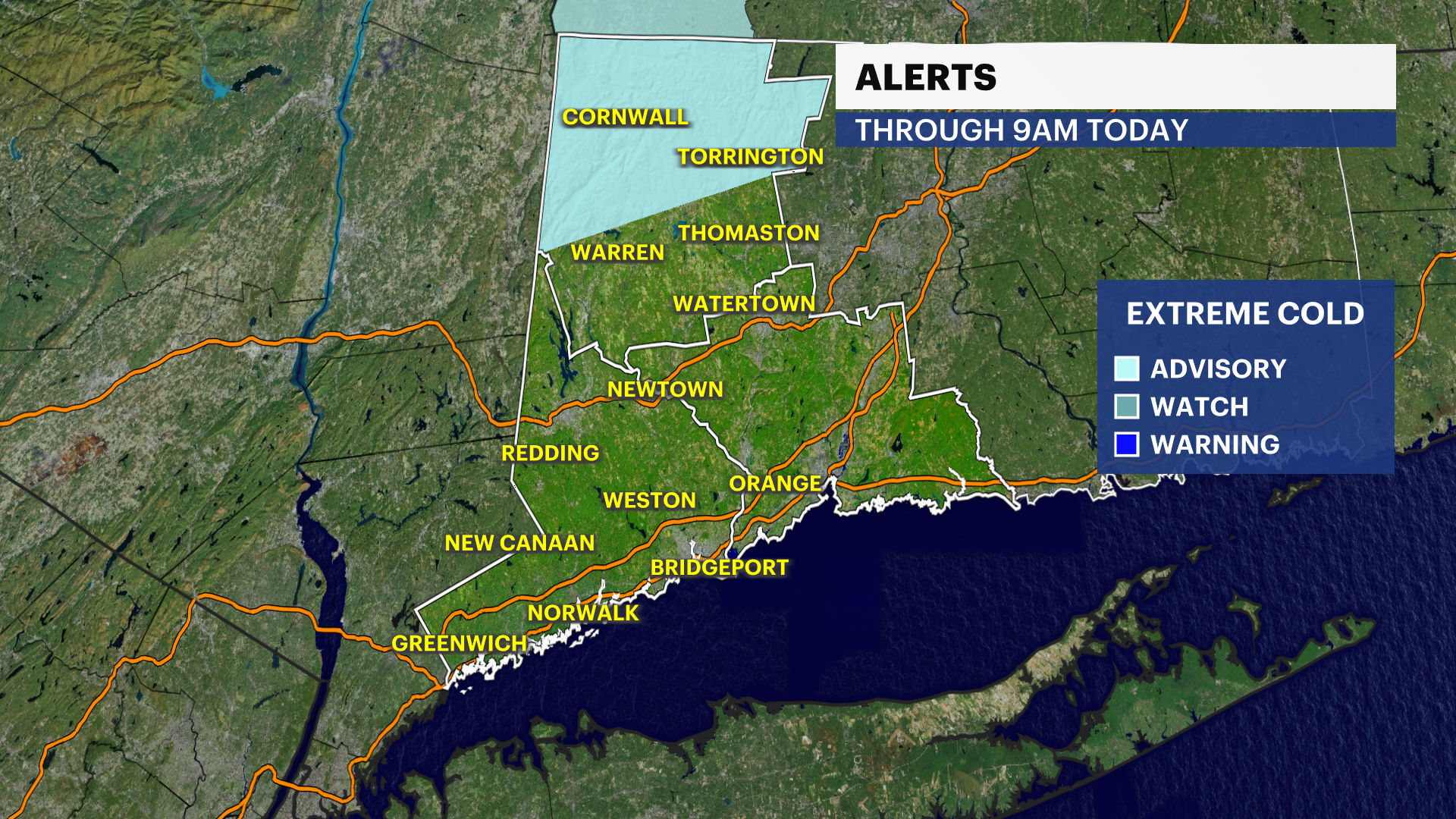 ALERTS: Cold Weather Advisory for northern Litchfield County until 9 am (Wind chills as low as -15)