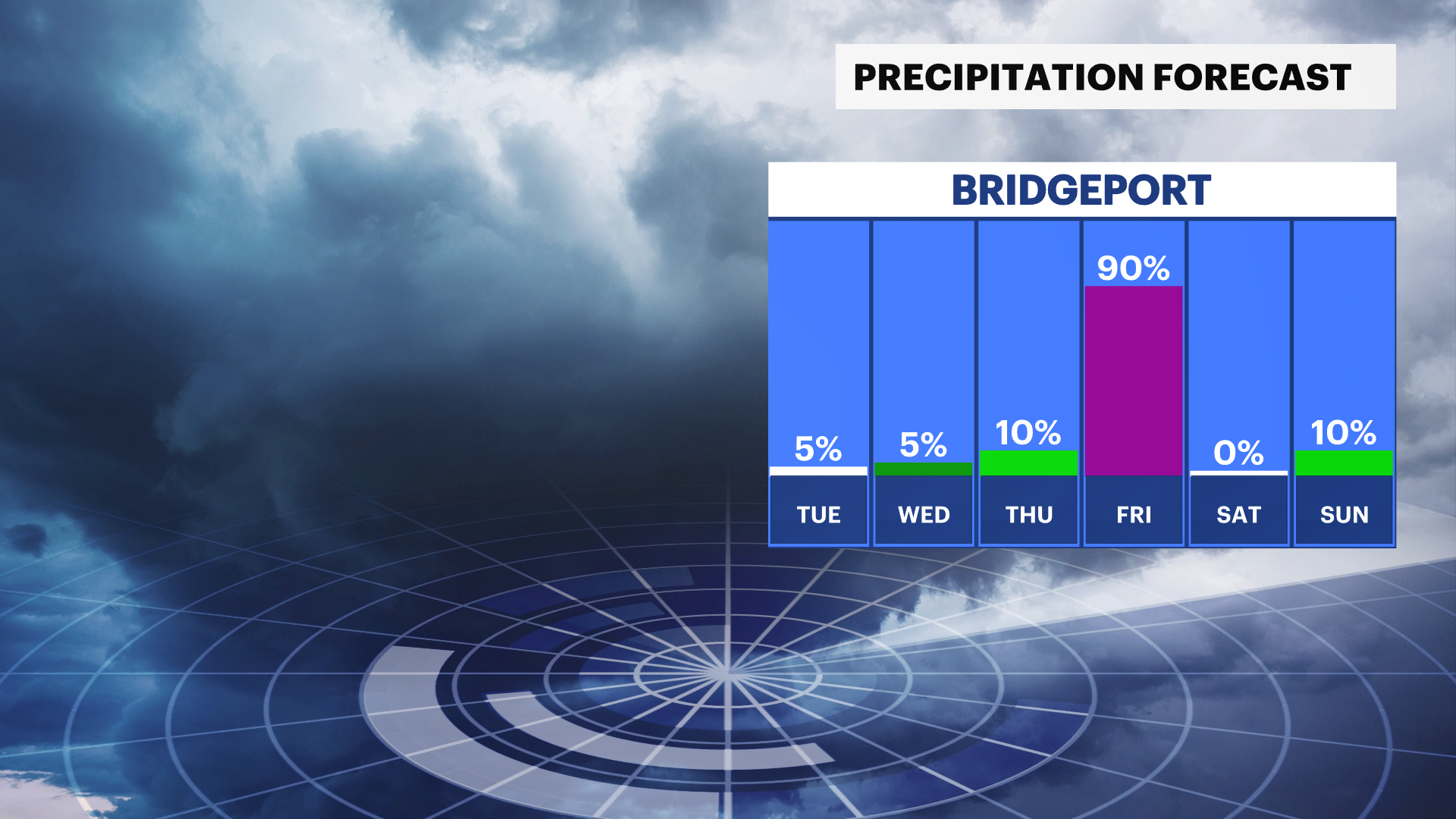 Friday: Breezy with lingering rain chances early, then partial clearing. Highs remain mild, near 50.