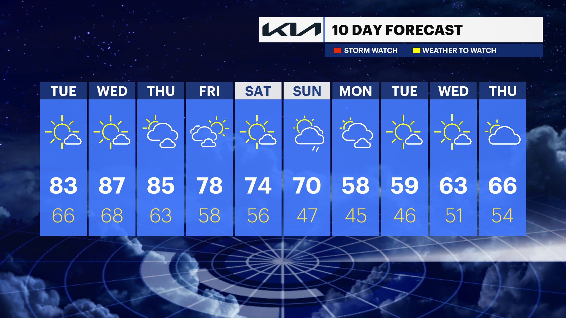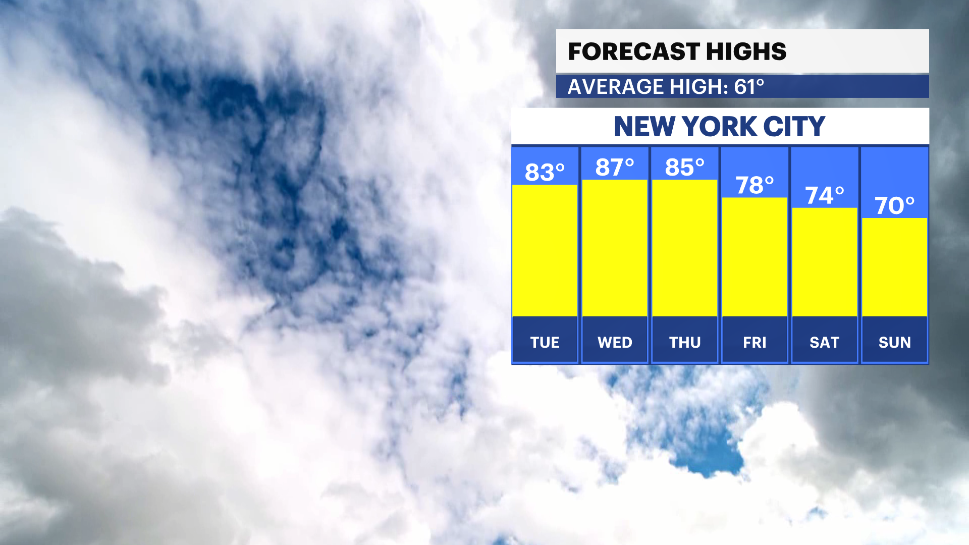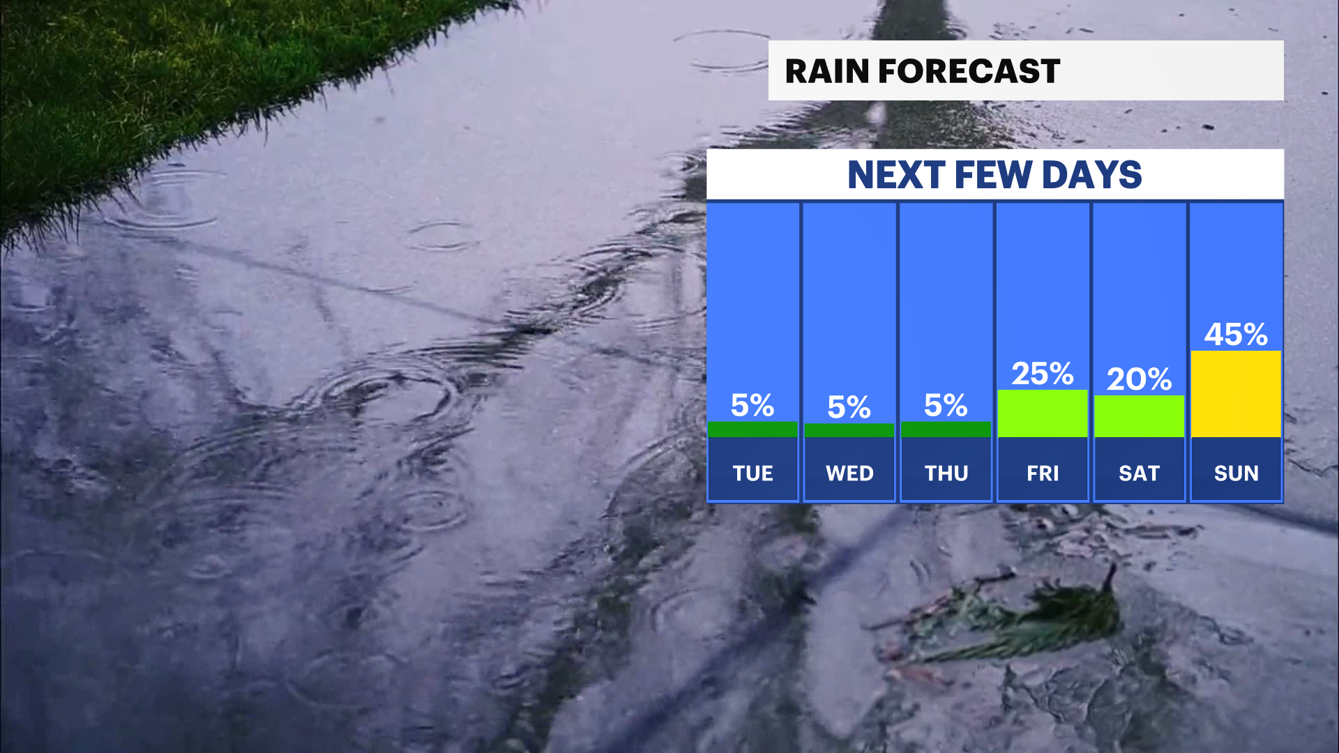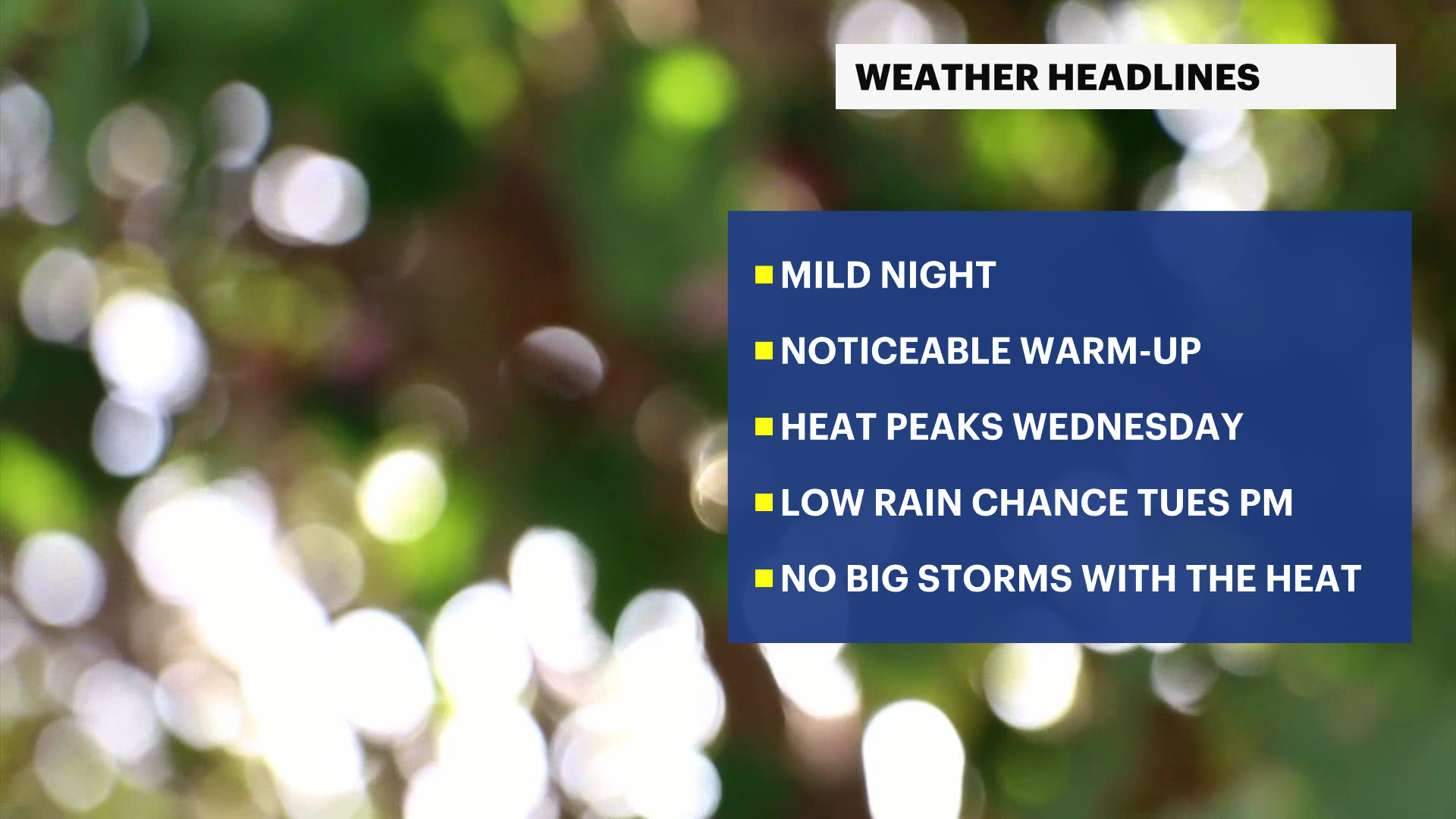 Record heat is possible on Wednesday with a forecast high temperature of 87 degrees. The record is 87 degrees setback in 1941. A nearby storm system will bring a slight chance of showers and potential storms after sunset on Tuesday and Wednesday. There's a better chance of storms North of the city. Temperatures cool down to the 70s this weekend. There's another chance of wet weather this weekend.