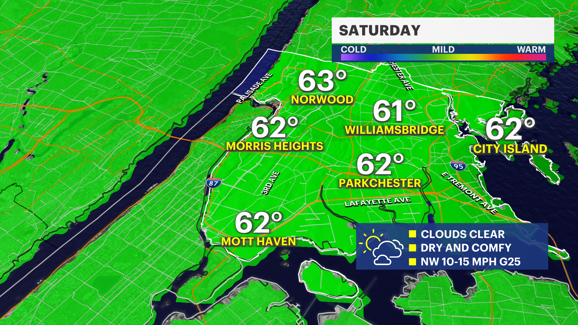 Tonight into Sunday: Winds ease up this evening as high pressure builds in, leading to a calm night. Sunday stays dry, but an ocean breeze keeps temperatures on the cooler side, mainly in the 50s. Overall, a quiet and comfortable end to the weekend.