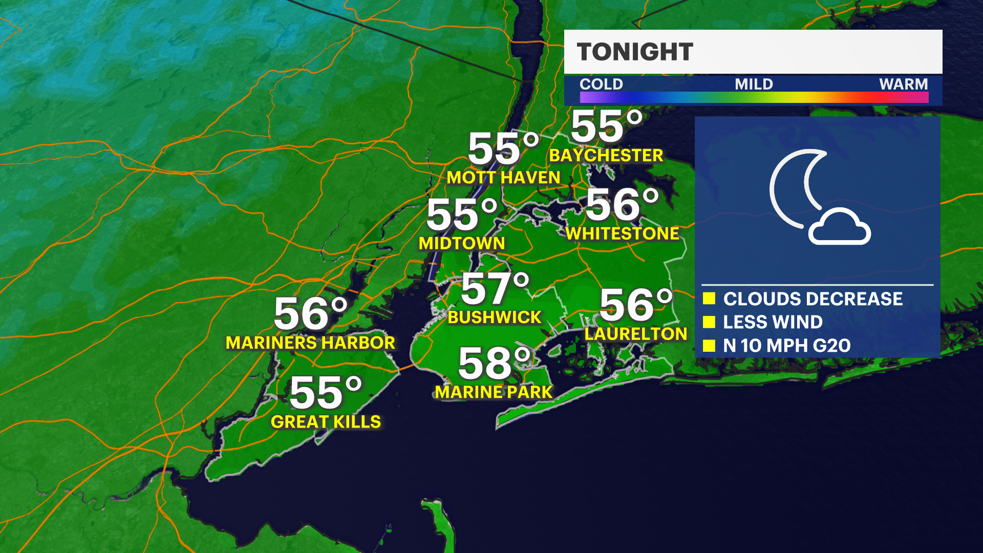 TODAY: Highs in the low to middle 60s. Mostly cloudy and breezy.