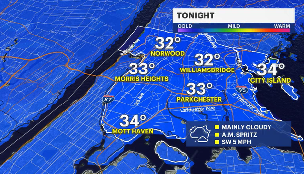 Overcast skies tonight with a chance of a few sprinkles by morning. Grab the umbrella as you are walking out the door. I can't rule out a renegade shower from time to time. Temperatures are a few degrees warmer than normal which is a nice change of pace.