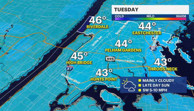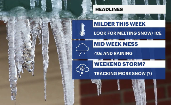 With hints of sunshine and a favorable wind, temperatures on Tuesday will climb a few degrees warmer than where they should be for this time of year. This will help continue to melt that existing snow and ice for the ground.