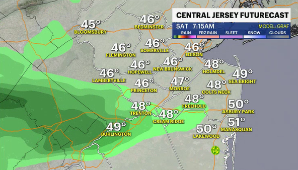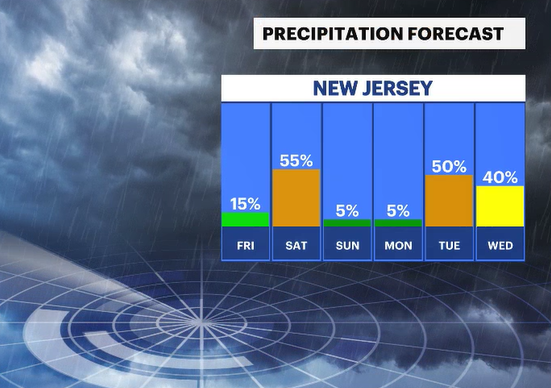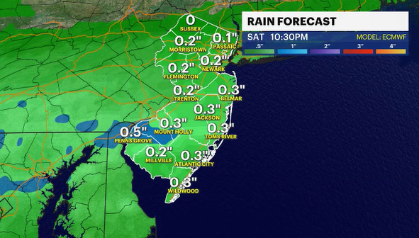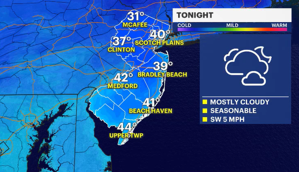 The showers will then move offshore; the winds pick back up, and slightly cooler air once again claims a stake over New Jersey for the early next week.