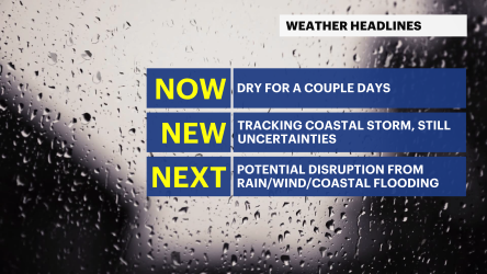 If this storm stays more to the south, we will experience less of an impact. We will be drier with less rain, but still experience strong gusts, decent-sized waves, and coastal flooding. The more south that this stays, the less intense the wind, rain and coastal flooding will be.