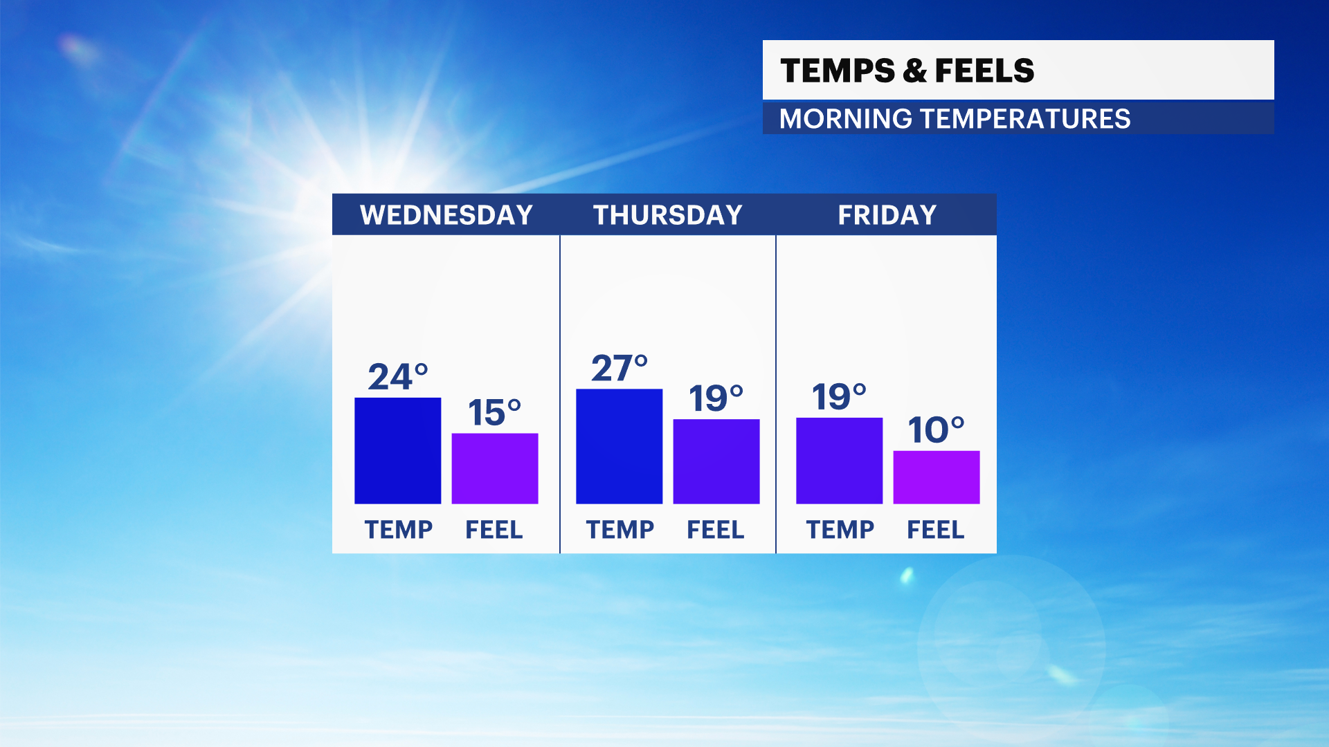 Winds will stay breezy into Wednesday and Thursday, making it feel like the teens at night and 20s during the day.