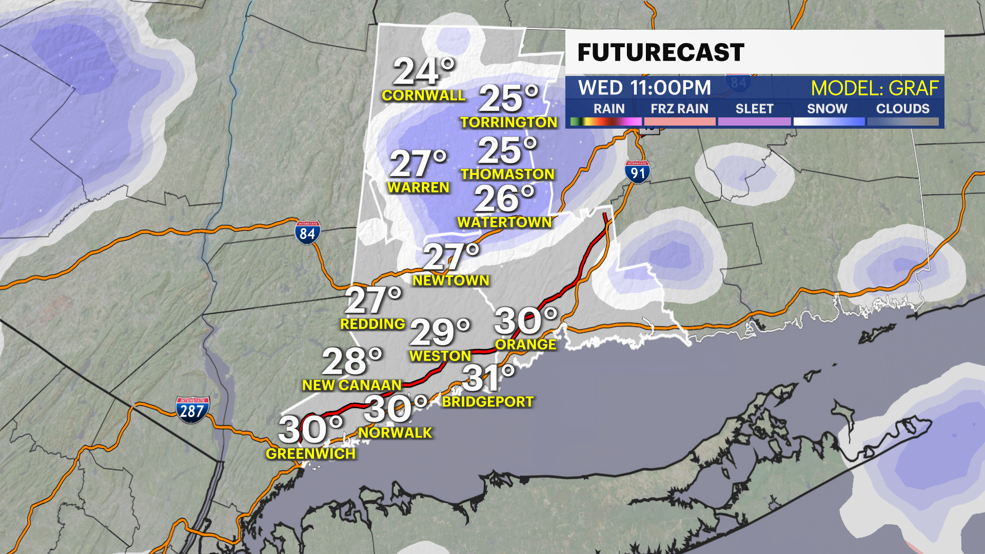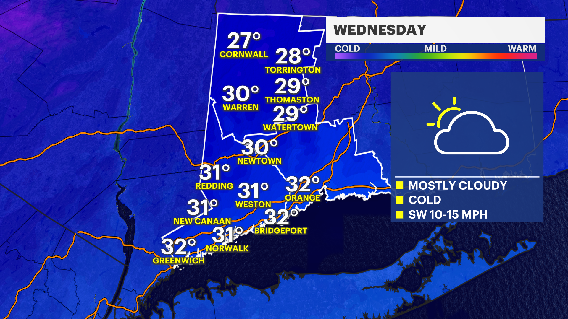 WEDNESDAY: Mostly cloudy. Breezy and cold. High of 35.
