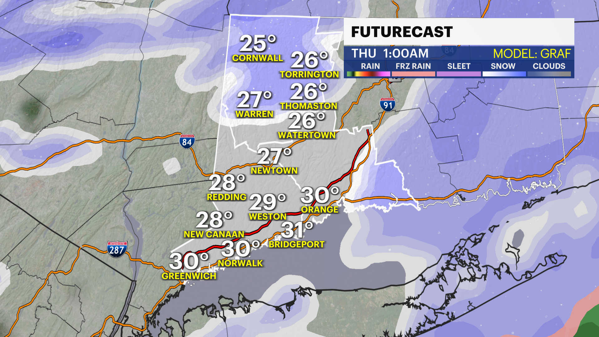 THURSDAY: Partly sunny. Early snow showers. High of 31.