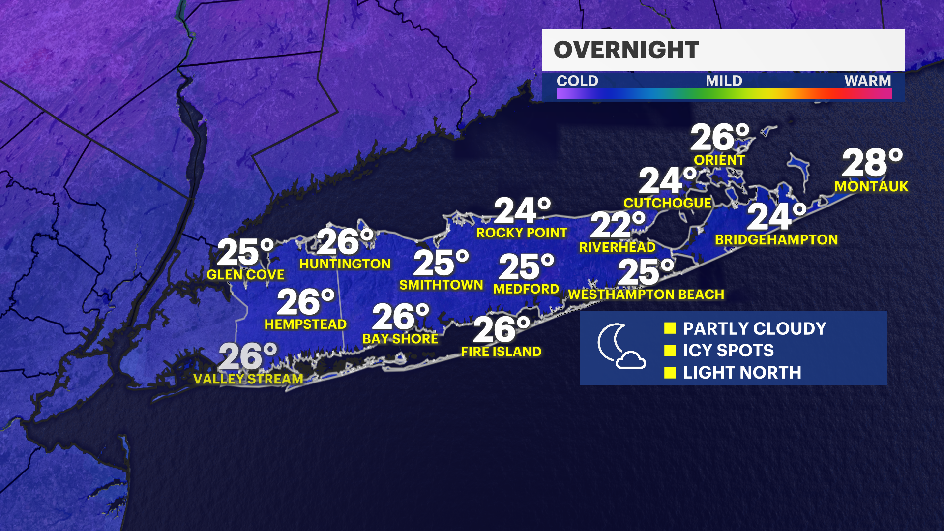 Dry weather this morning with sunshine. We do have to watch out for some black ice as temperatures start out in the 20s and low 30s. Clouds will be on the increase for the afternoon as we watch a storm south of Long Island