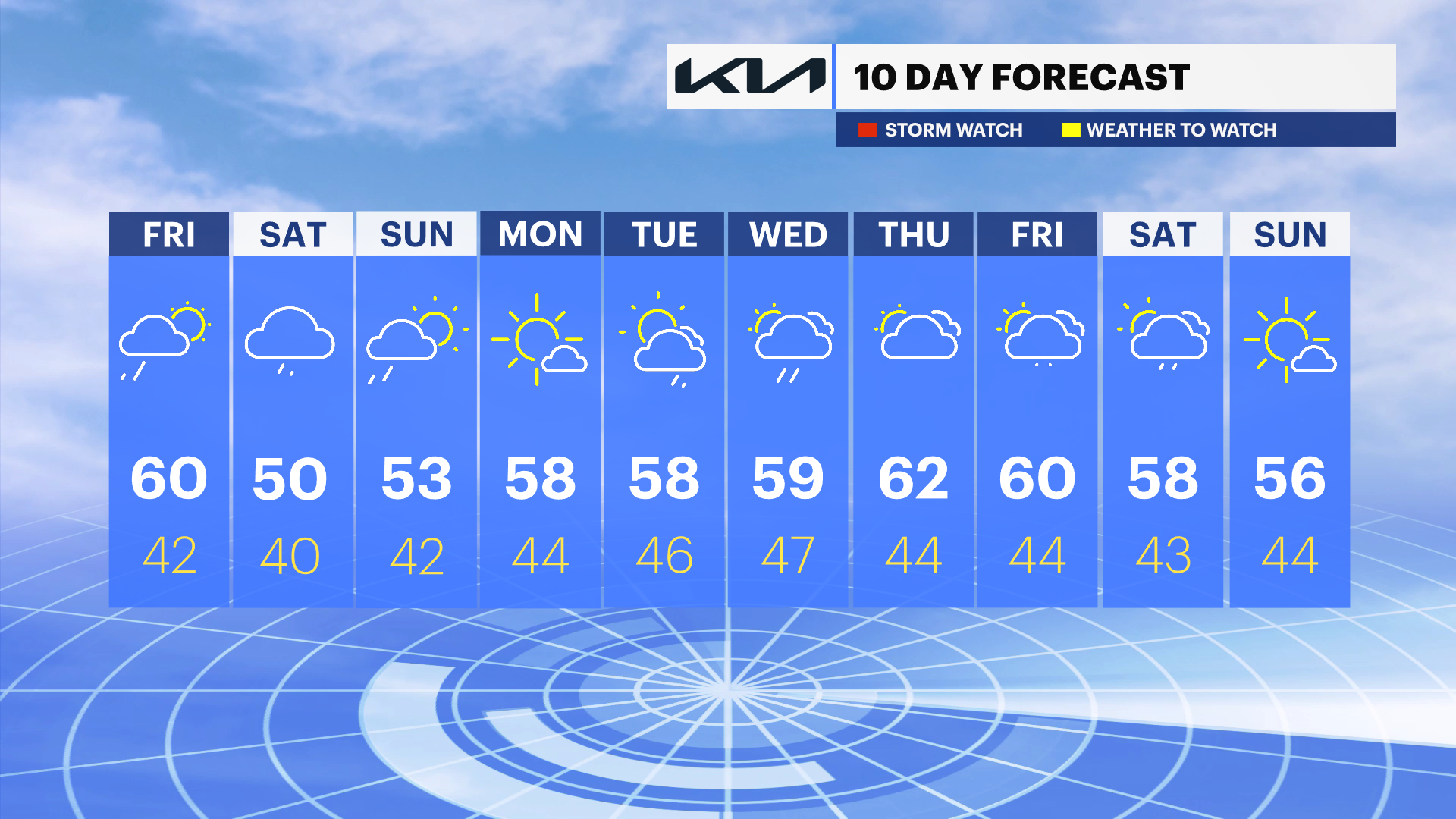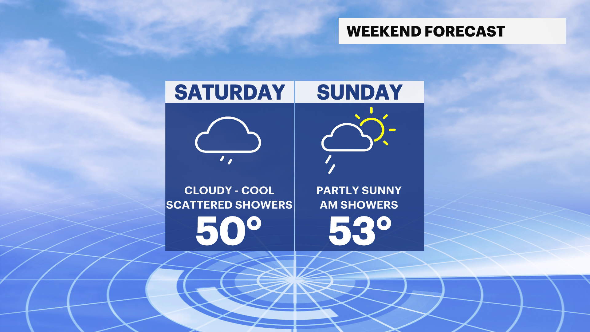 Looking ahead to the weekend, we’re tracking wetter weather. Saturday brings rain showers, especially during the afternoon, with highs in the lower 50s. On Sunday, a few morning showers before things begin to dry out. Expect lots of clouds to stick around, with temperatures topping out in the mid-50s to wrap up the weekend.