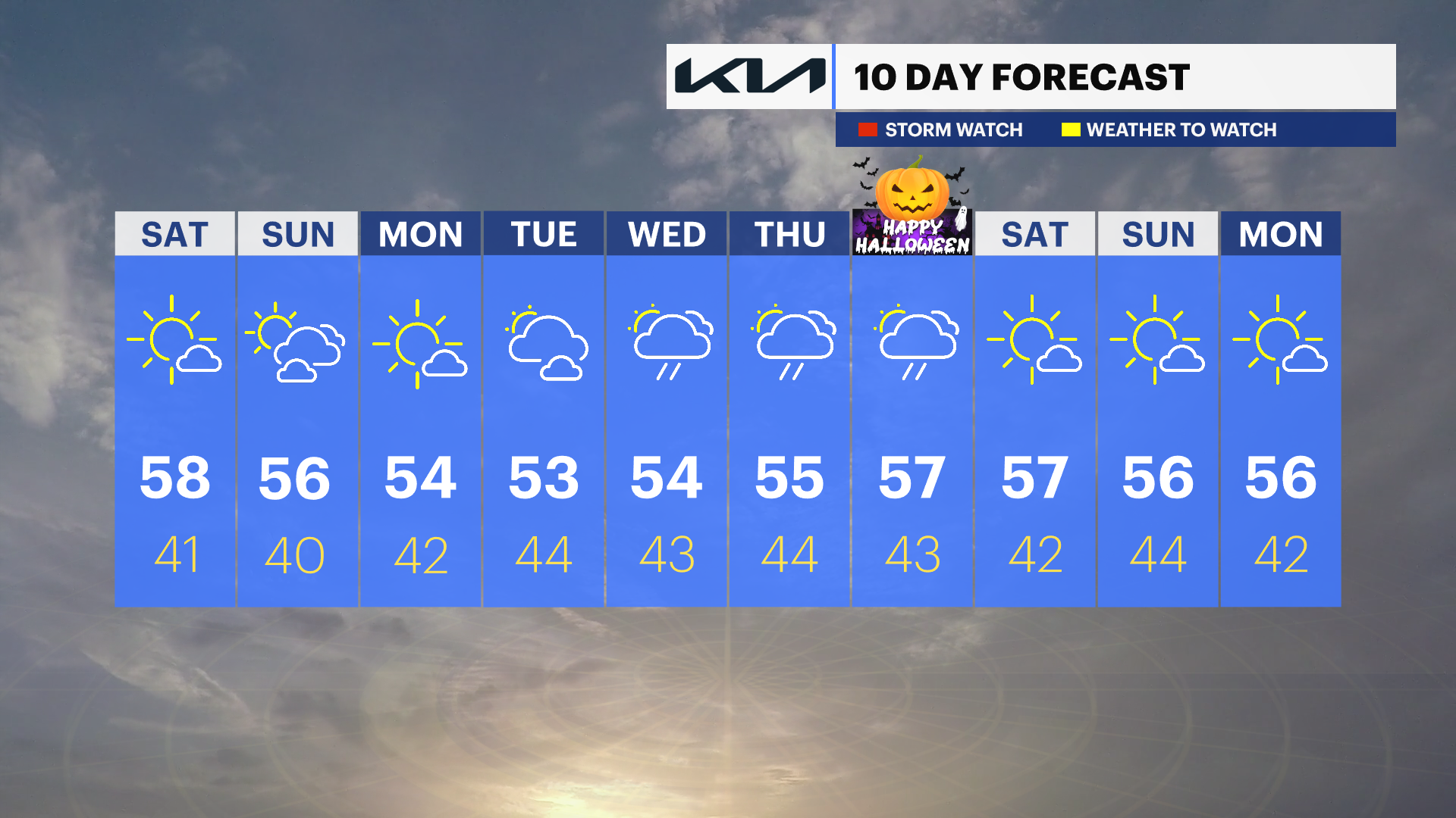 The weekend will feature a mix of sun and clouds, but it will be cool. Daytime highs will only reach the middle to upper 50s.