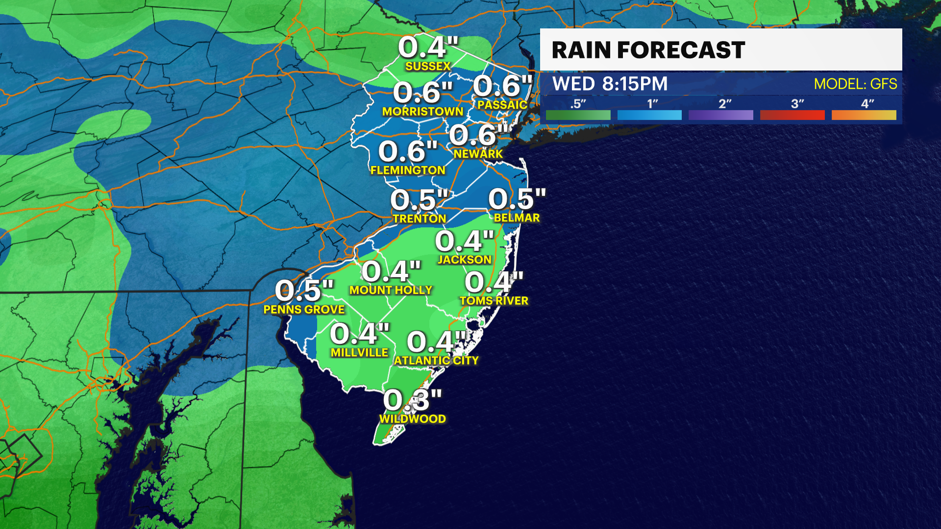 WEDNESDAY: Mostly cloudy, showers. High 62.
