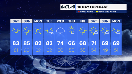 The warmer, summer-like temperatures will also stretch all the way into next week. Look for changes around Tuesday night and early Wednesday.