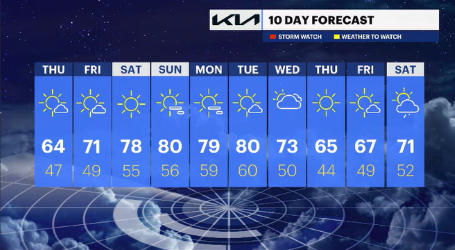 But enjoy the cooler weather for the next few days with highs in the mid- to upper-60s and lows dipping into the 40s overnight.