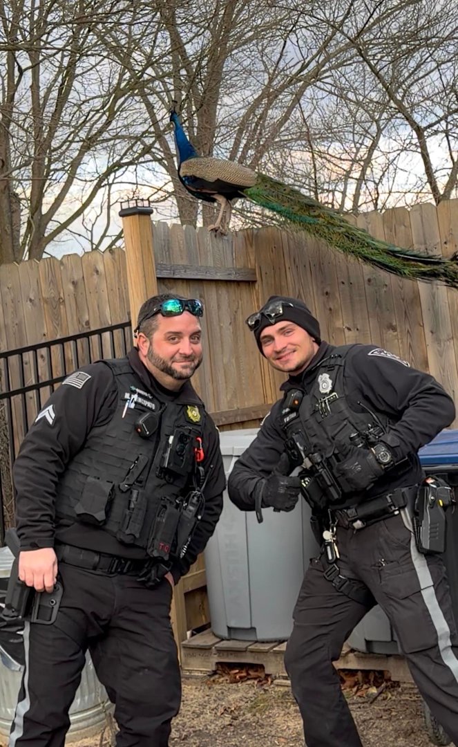 Deptford police say they also learned quite a bit about Pavo cristatus, the scientific name for a peacock. In addition to learning that the giant birds are faster than they look, officers also found out that peacocks do not always stay grounded.