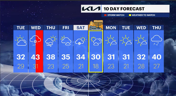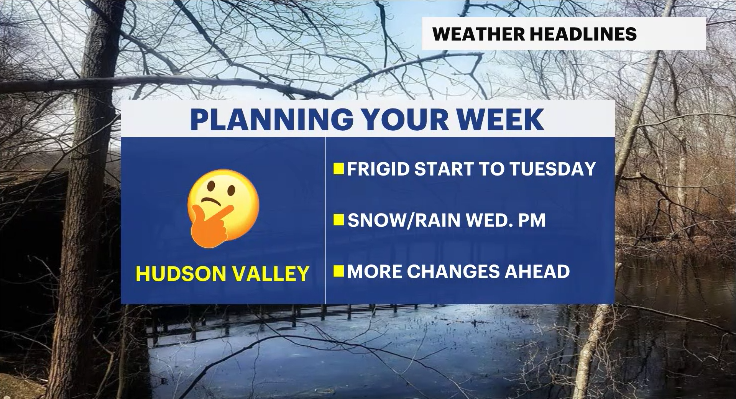 WEDNESDAY: Cold morning, with rain and snow mix likely. Accumulating snow is likely in Ulster and Dutchess County during the afternoon and evening hours. Temperatures will be seasonable. Highs in the low 40s. Lows in the low 30s.