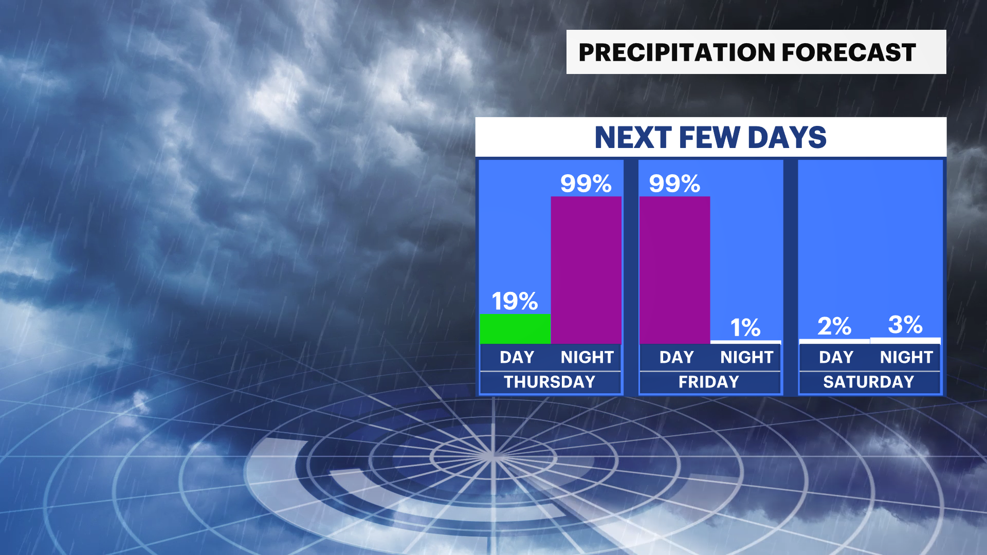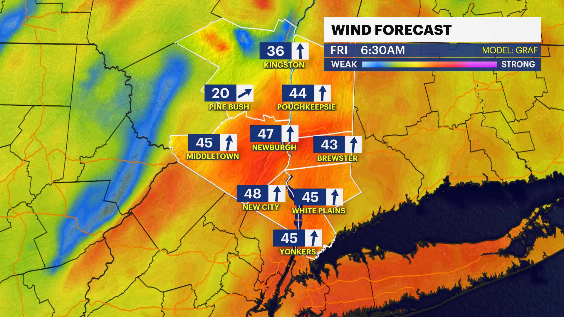 FRIDAY: Wind-driven rain early, windy. Temperatures drop throughout the day with an early high of 58. Lows around 31.