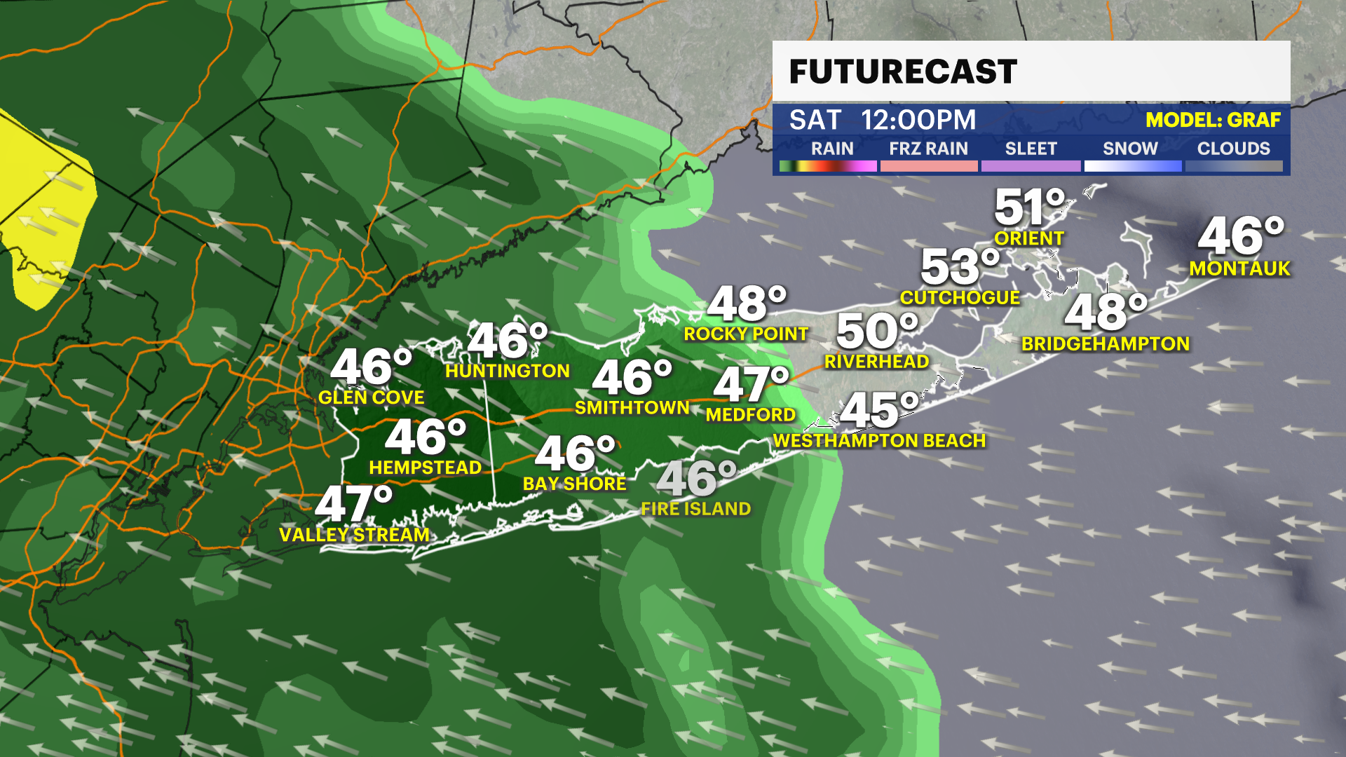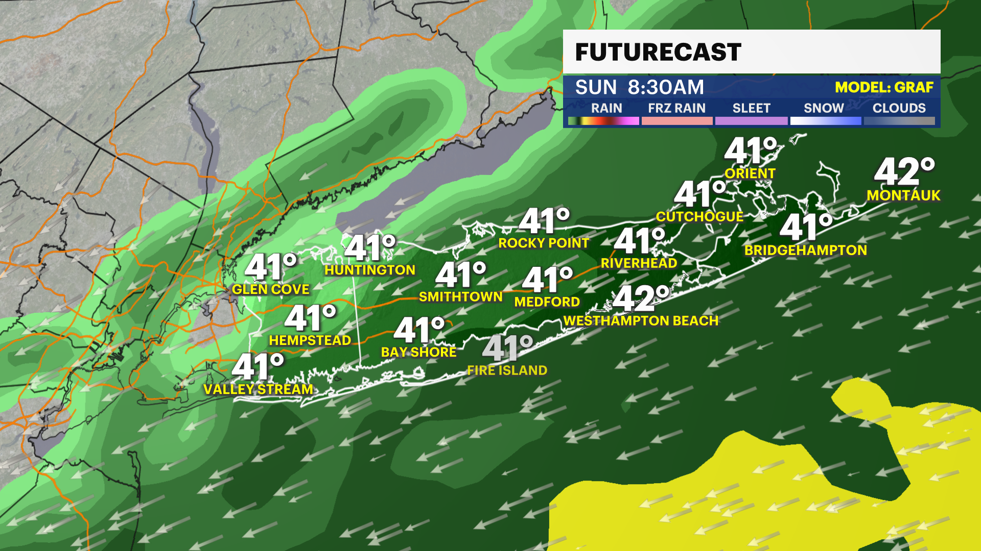 Scattered light rain showers are around Long Island overnight. Plan on a wet start to the day on Wednesday with on-and-off light to moderate rain showers. This shouldn't slow you down much on Wednesday morning, but just be prepared for a wet start to the day. The cold air from the past couple of nights and mornings is also gone, but it will still feel chilly with overnight lows around the lower 40s for most of Long Island.