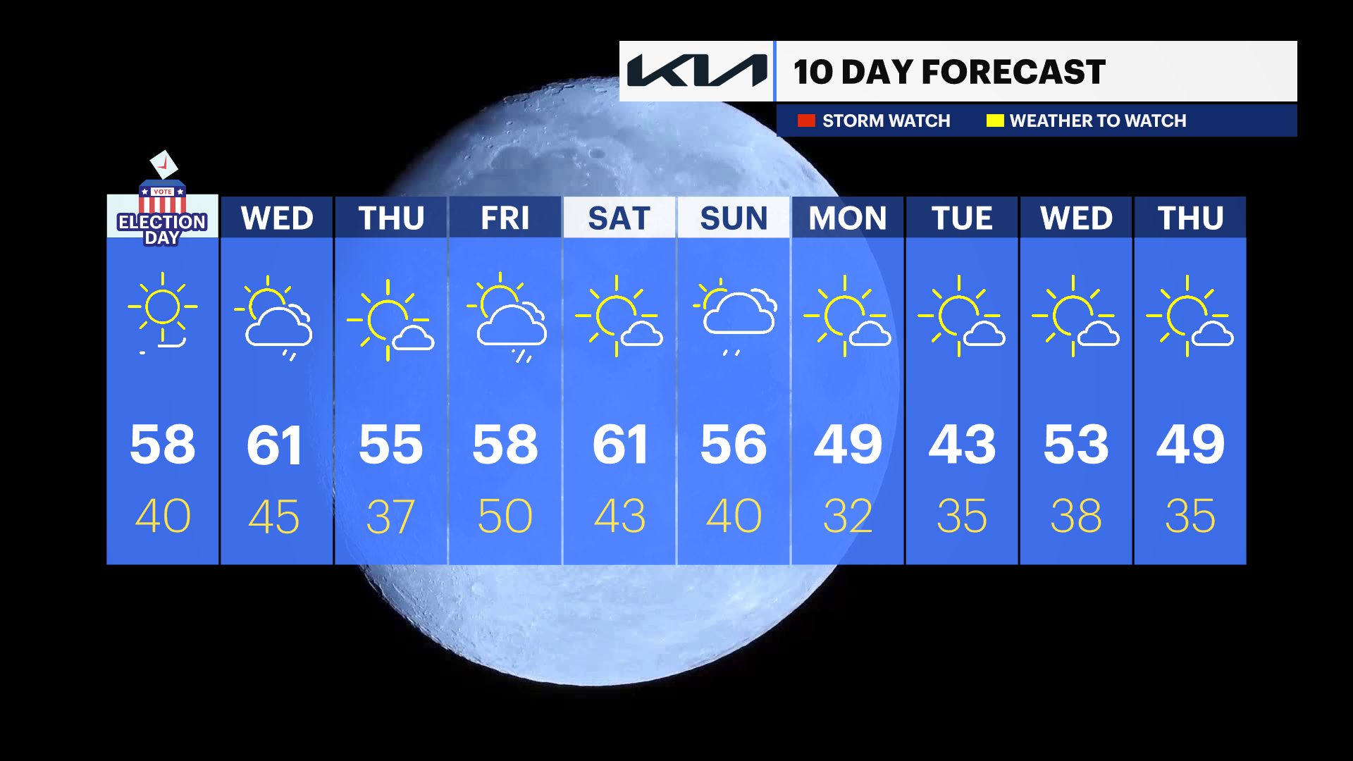 A cold front will slide through the state Monday evening with clouds and a few isolated showers. There will be clearer skies and cooler winds as we head into Tuesday morning. The weather looks good for Election Day, just breezy.