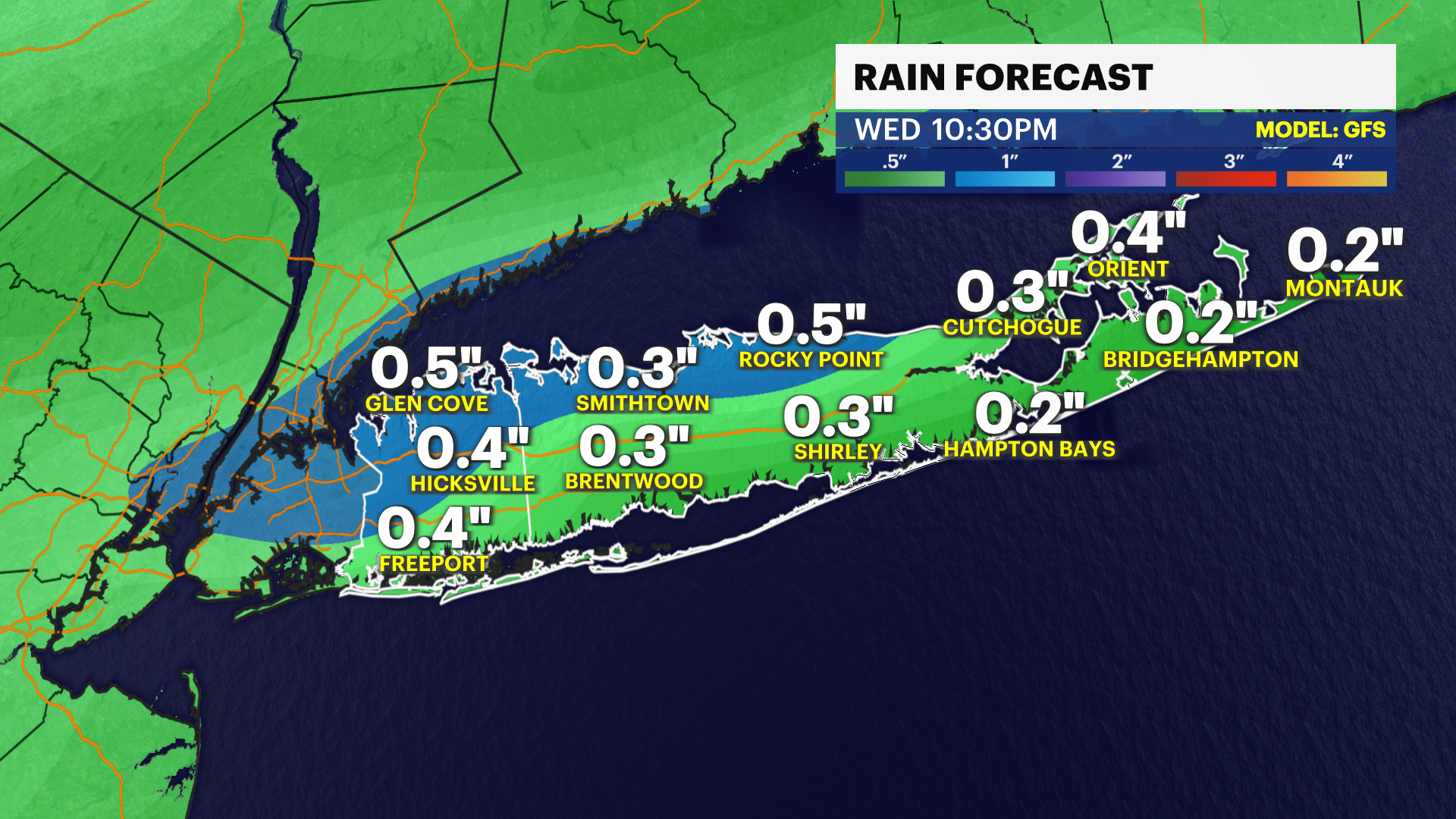 WEDNESDAY: Mostly cloudy with periods of rain. Highs around 73 degrees. Lows near 50 degrees.