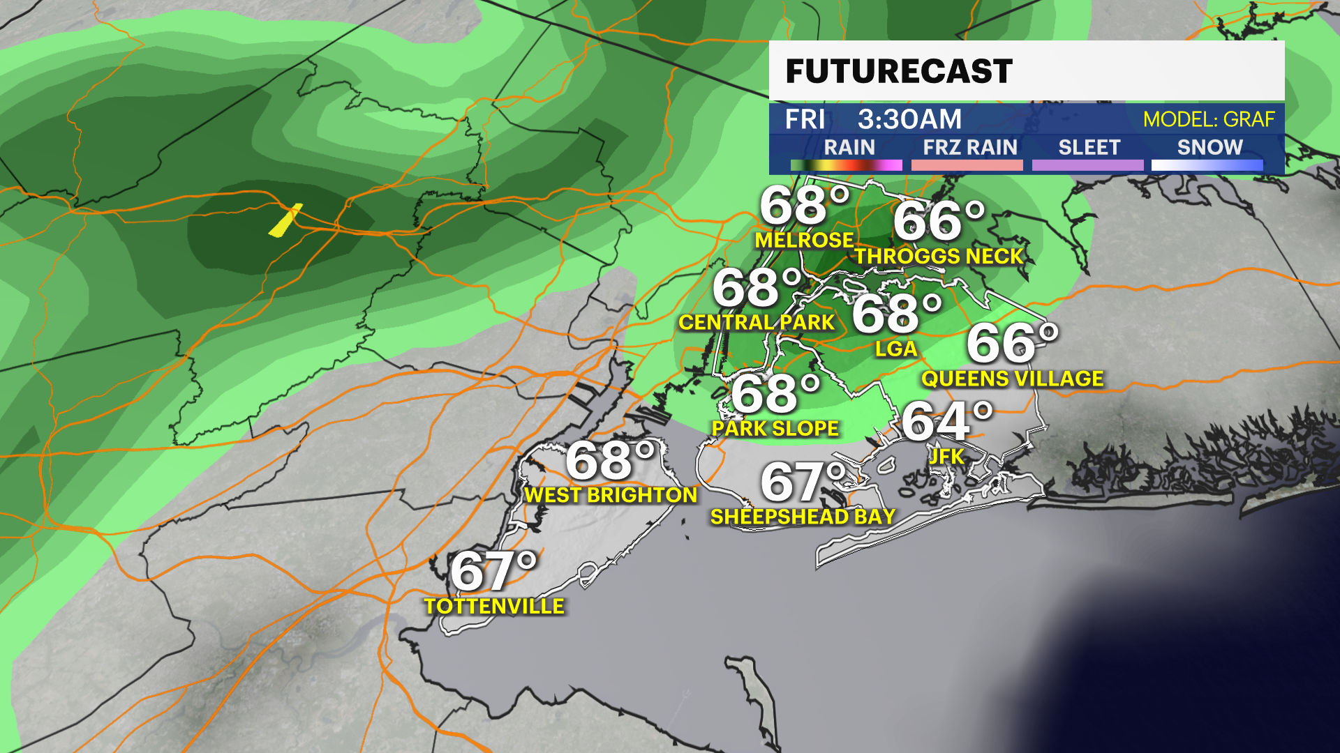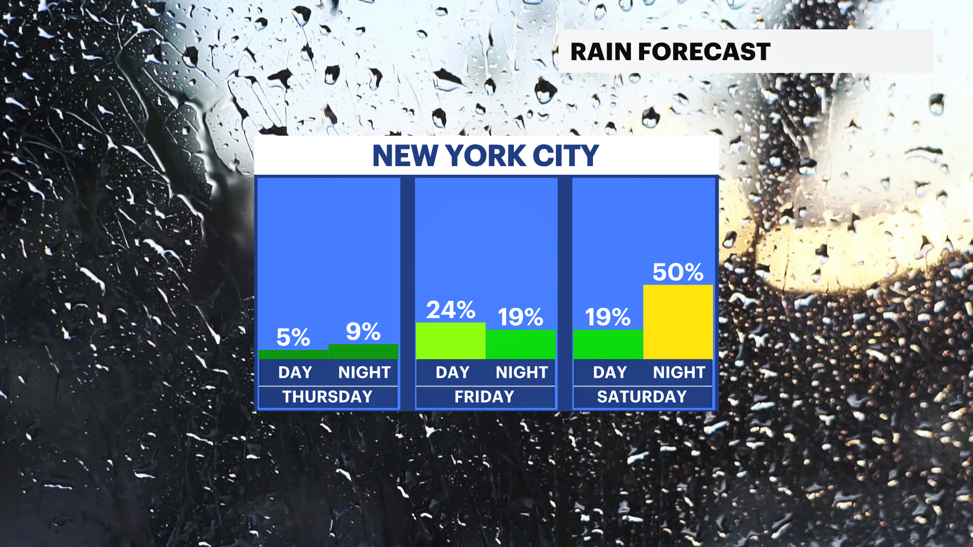 A few passing showers or a late‑night storm may pop up after midnight, though the better chance for storms sits north and west of the city. Highs on Thursday will stay in the mid to upper 80s away from the coast. Thursday very late into early Friday we could see another stray shower or storm. This is the continuation of an annoying weather pattern we are in: hot with a stray shower or storm chance for the city after bedtime for most.