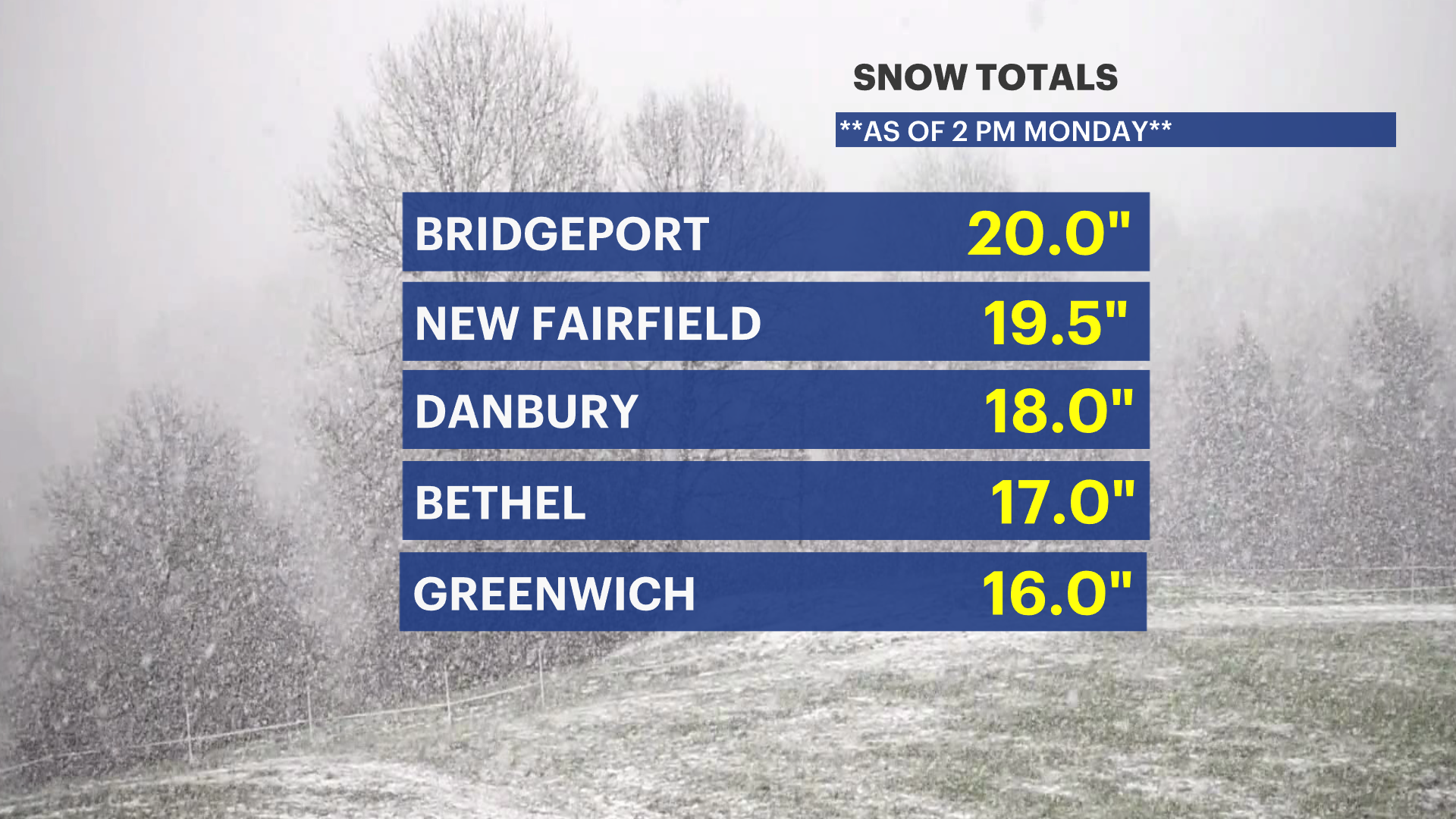 Here are the latest snow totals as of this afternoon: