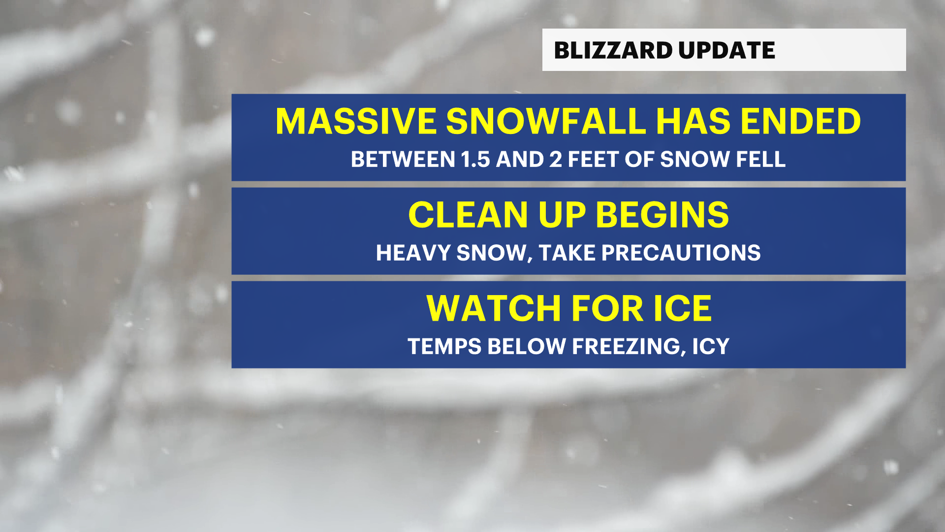NEW THIS EVENING: The snow has stopped and the blizzard warning has been eliminated. Slow cleanup begins.
