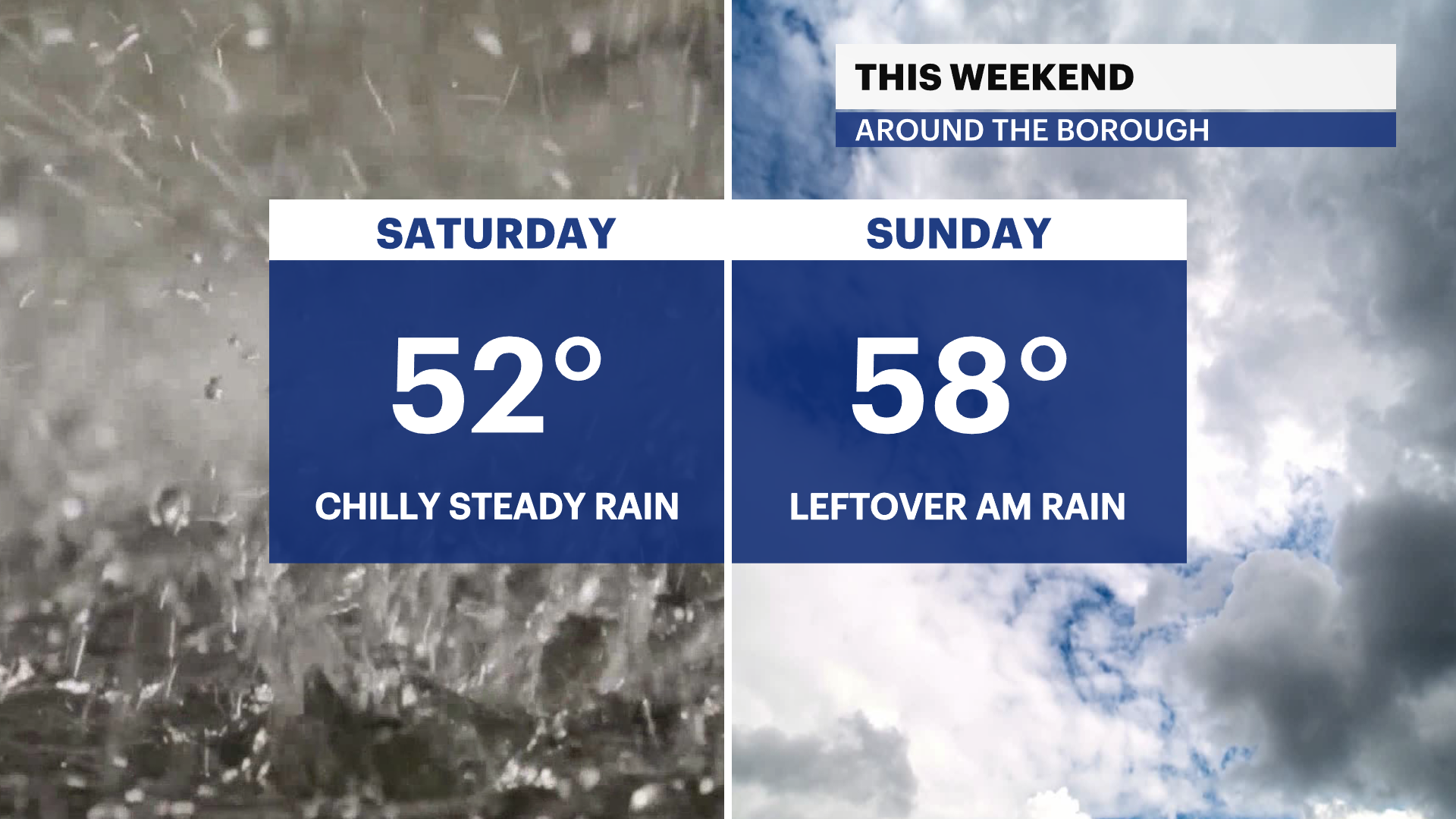 This weekend will be cooler with highs in the 50s. A slow-moving front will bring steady rain Saturday midday into early Sunday morning. Saturday will be a nasty day with rain, breezy conditions, and chilly temperatures. Close to an inch of rainfall is likely with any downpours. Wet roads, large puddles and low visibility will bring messy driving conditions Saturday afternoon and evening. The storm system exits Sunday morning with the second half of the day trending drier under a mostly cloudy sky.