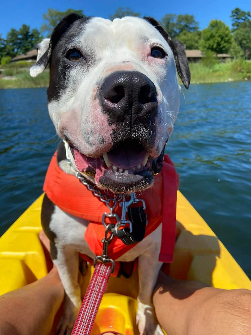 Cookie is over eight years old, loves people, car rides, kayaking, and snuggling. She knows basic commands and has leash manners.