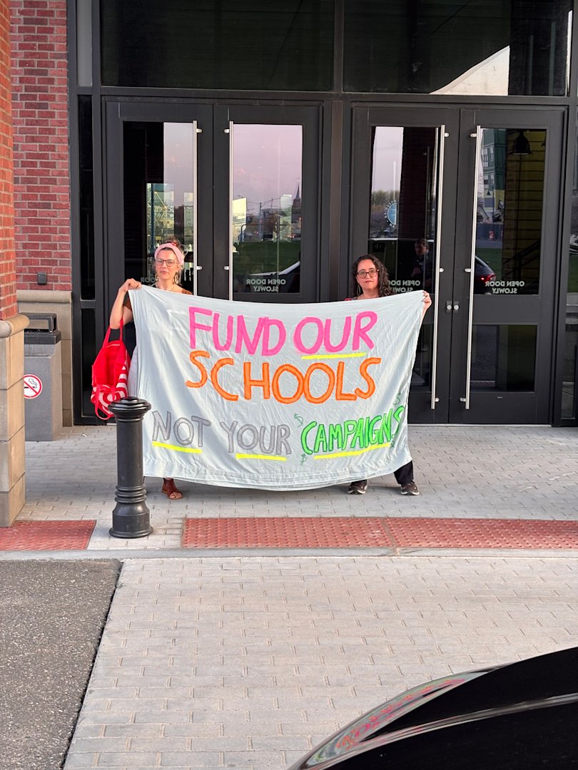 Protesters interrupted a fundraiser Thursday featuring Gov. Ned Lamont as Bridgeport Mayor Joe Ganim kicked off his reelection campaign.