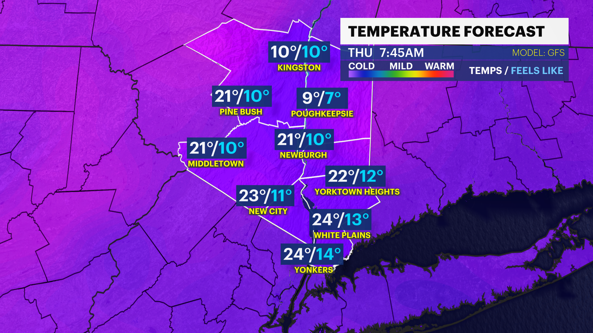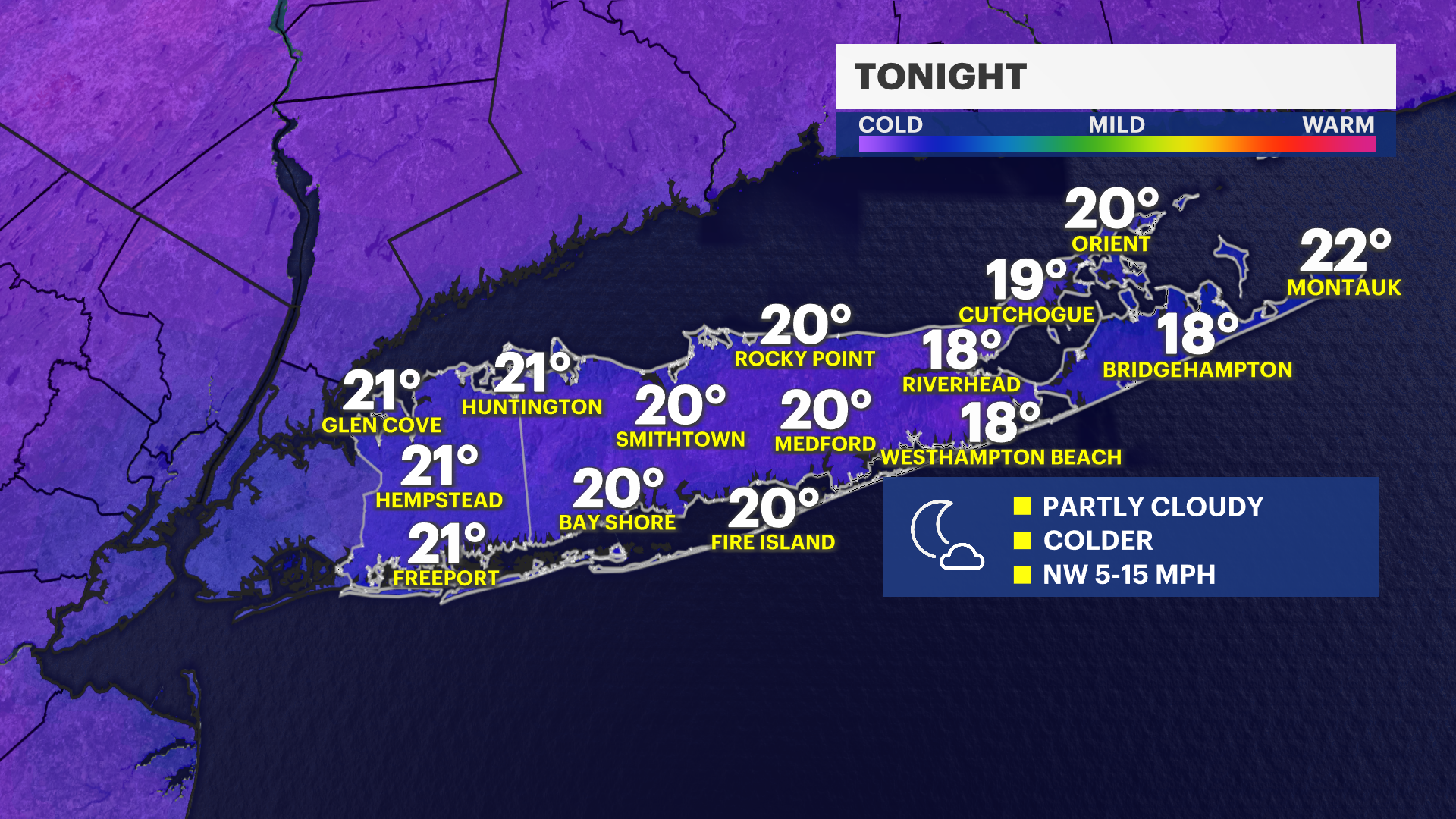 ALERTS: A winter weather advisory is in effect until 6 a.m. Wednesday for the North Shore of Nassau, Suffolk counties. Temperatures can be close to freezing along parts of northern Long Island overnight. This can lead to a trace of ice and slippery spots into Wednesday morning as a period of rain moves through. The rest of Long Island is expected to get plain rain.