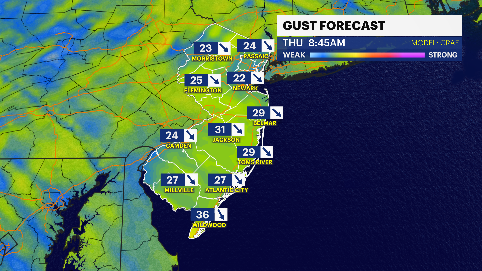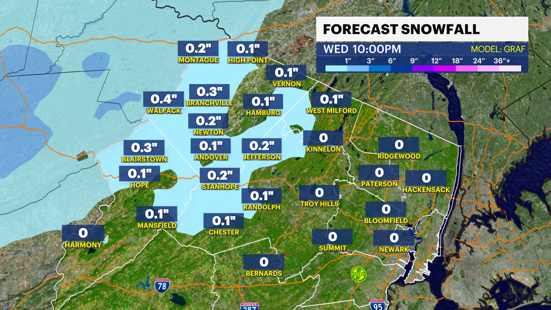 We continue to watch Sunday where a passing clipper system may graze through New Jersey leaving behind a light dusting of snow. Totals are tough to pinpoint right now, but the impact does not look major but can disrupt midday travel in some spots. More will unfold after today's weather passes through.