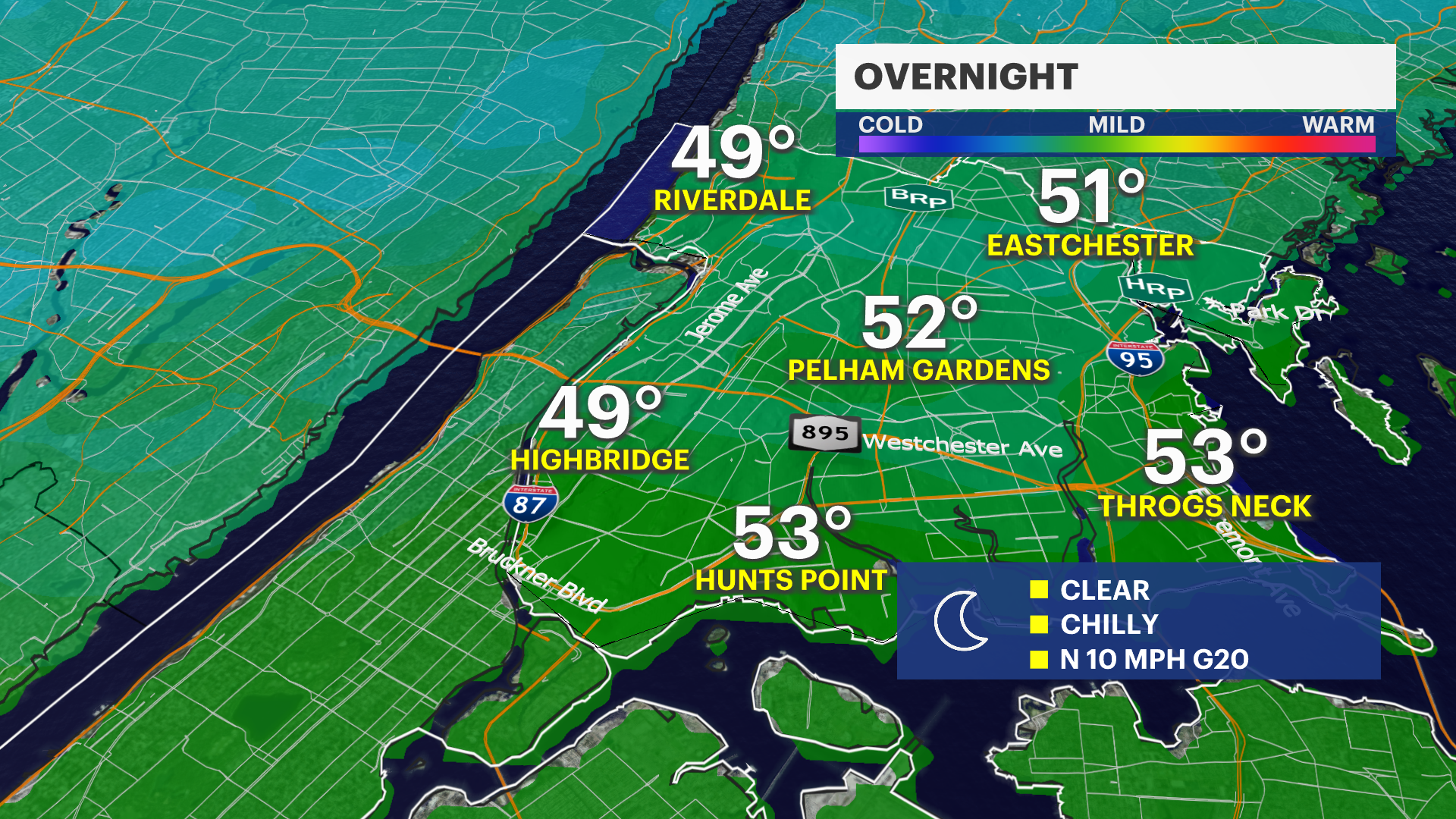 OVERNIGHT: Lows in the lower 50s. Mostly clear and chilly.