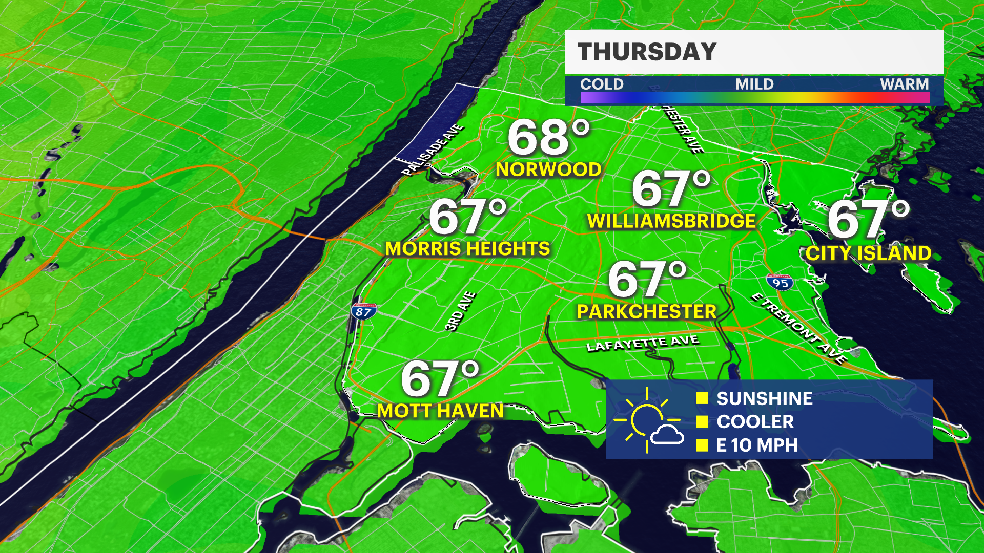 Temperatures continue to be cool and fall-like into Thursday, with highs in the mid-60s. A touch warmer for Friday, with highs in the higher 60s and lower 70s.