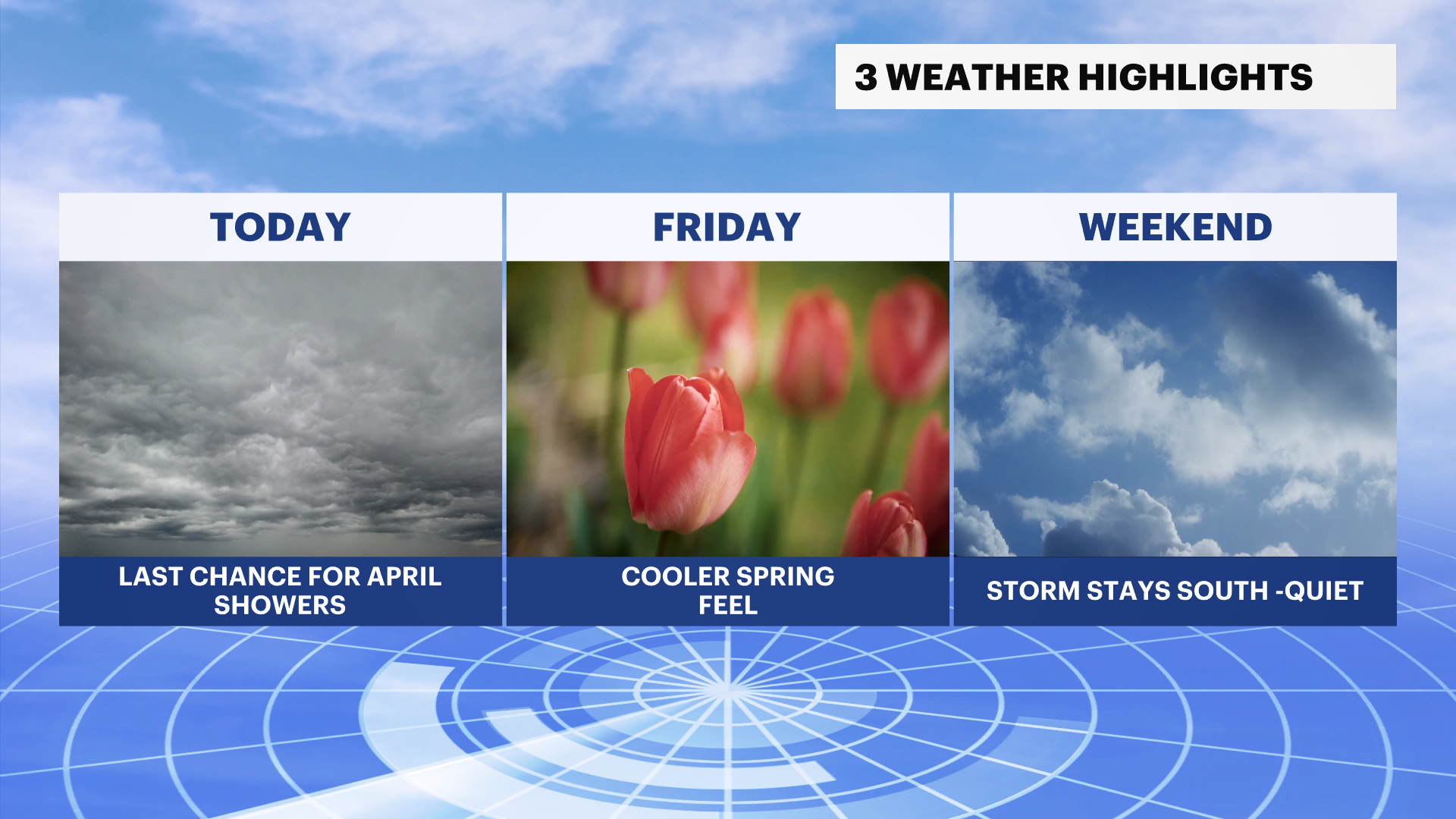 It stays dry and breezy with cooler temperatures Thursday and Friday. Highs will be in the 50s and low 60s. A nearby coastal storm will bring a chance of rain this weekend. There's still some uncertainty on the track and timing, but we're monitoring Saturday evening for potential rainfall. Stay tuned for updates!