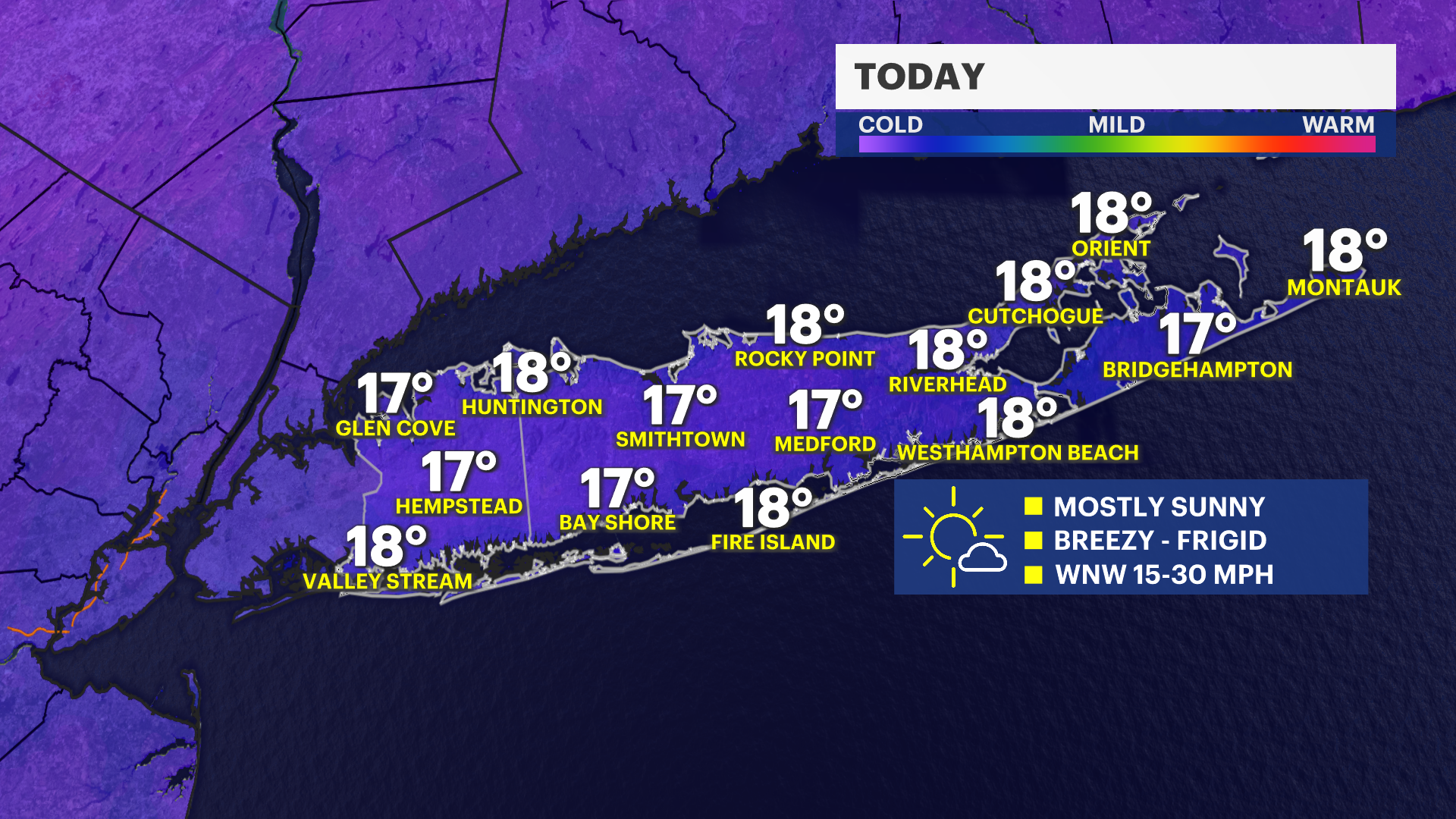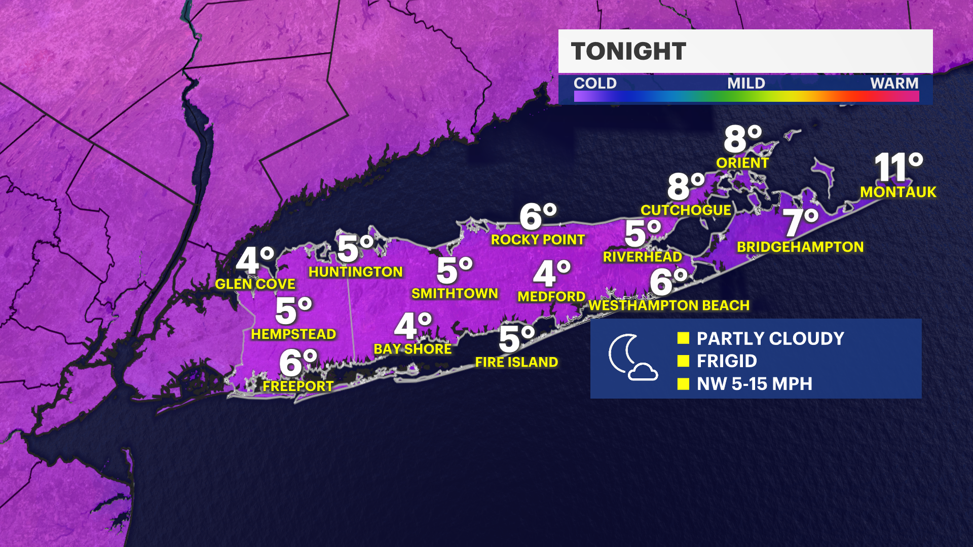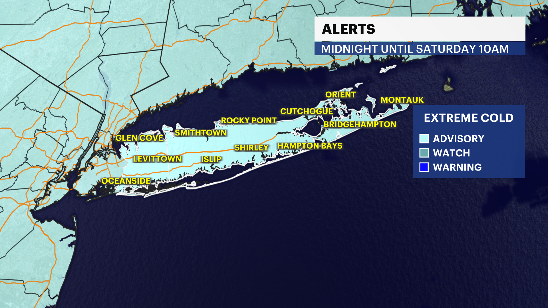 ALERTS: A cold weather advisory continues for all of Long Island until 10 a.m. Saturday for wind chills -5 to -15 degrees.