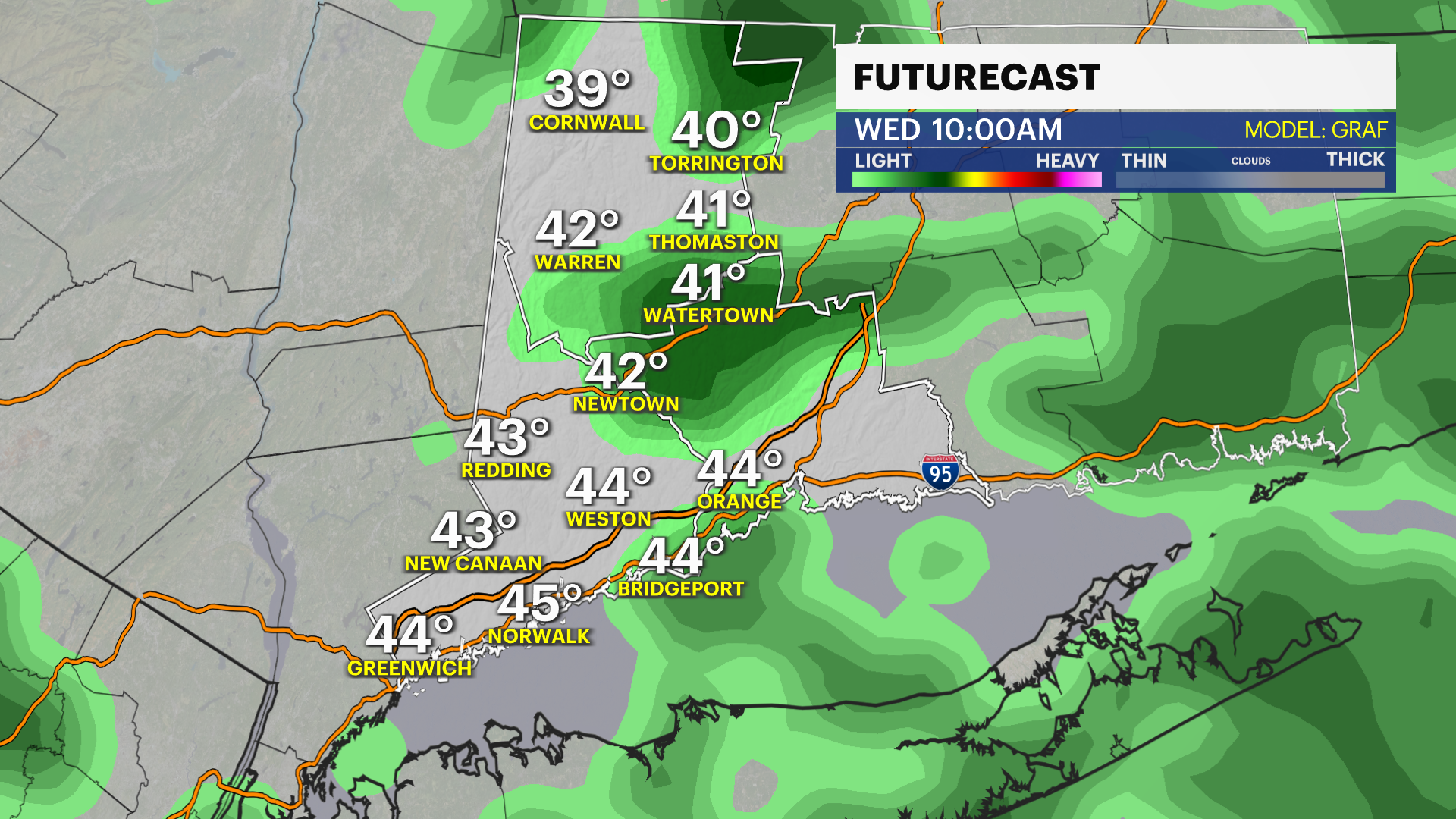 Monday: It will stay on the cool side, with temperatures in the upper 40s to low 50s. A passing shower is possible, but much of the day will just feel brisk, with a mix of clouds and sun.