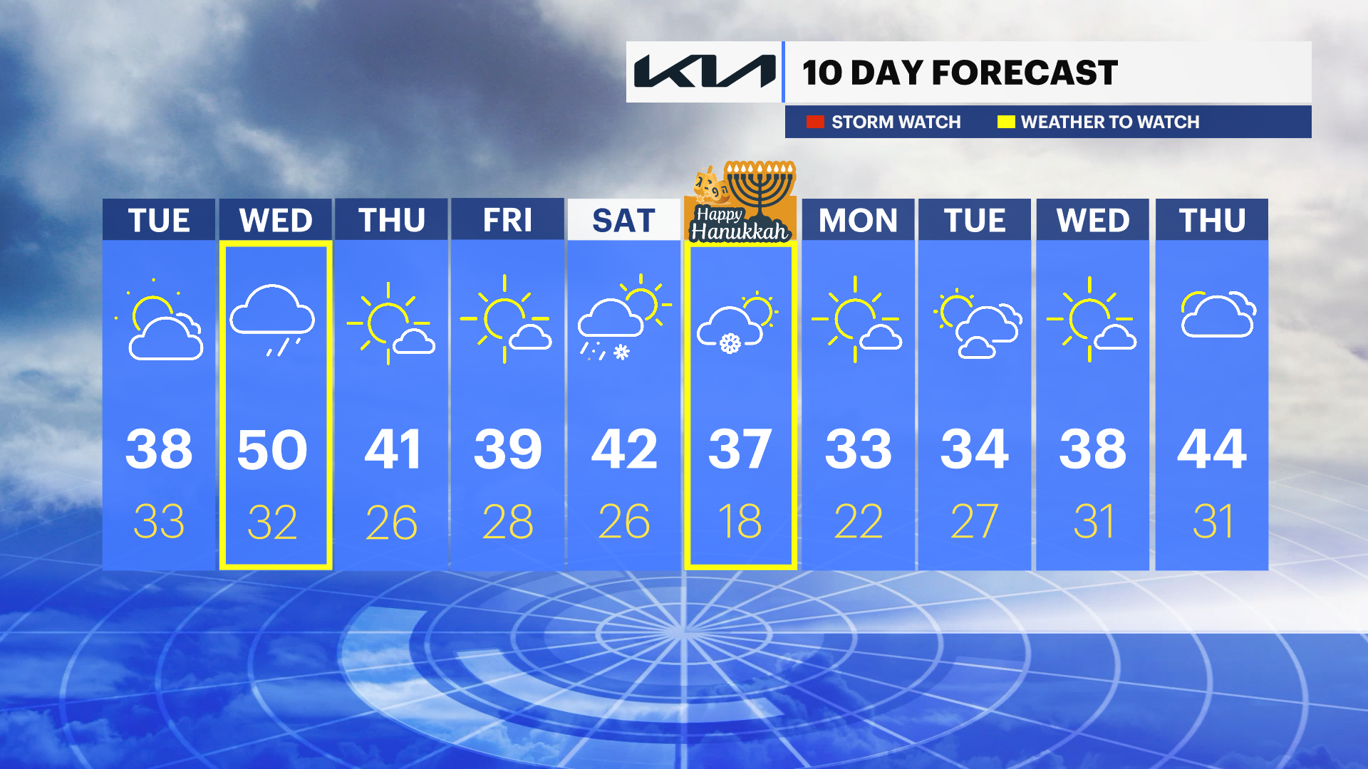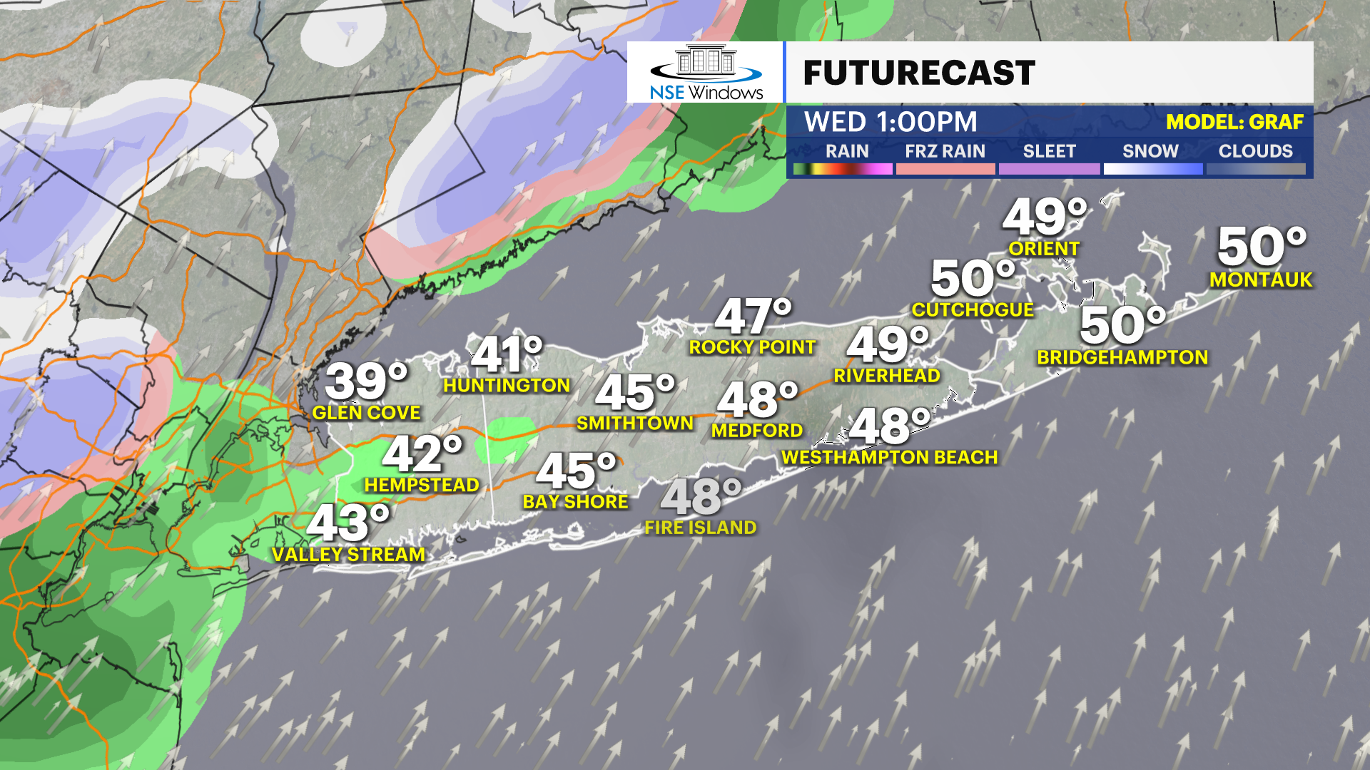 Thursday: Mostly sunny with a high near 39. Wind chill values between 20 and 25. Breezy with a west wind 20 to 25 mph with gusts as high as 40 mph.