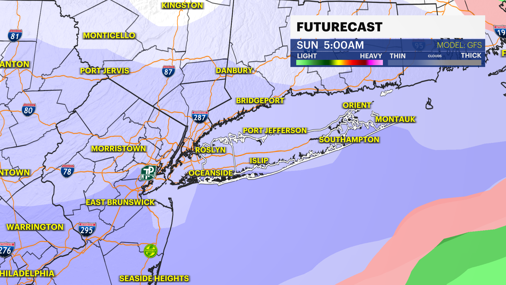 Sunday: Chance for a period of light snow or snow showers. Mostly cloudy with a high near 36.