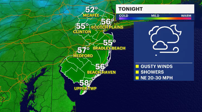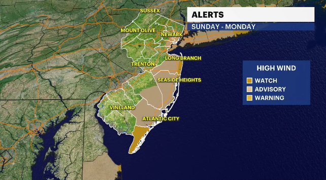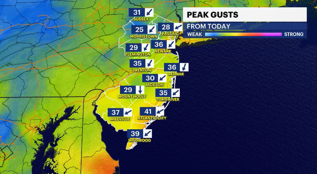 The storm is going to linger through most of Monday. The highest rainfall and gustiest wind reports will be along the immediate shoreline. The power could flicker in many New Jersey neighborhoods.