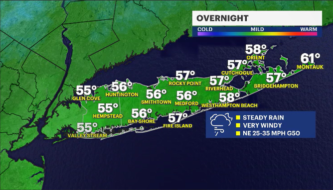 STORM WATCH: Nor’easter brings steady rain, strong winds overnight on Long Island