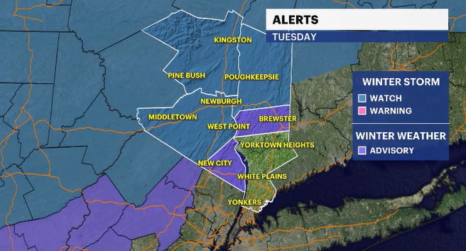 Winter Weather Advisory For Rockland, Putnam counties. It is in effect from Tuesday morning into late Tuesday night.