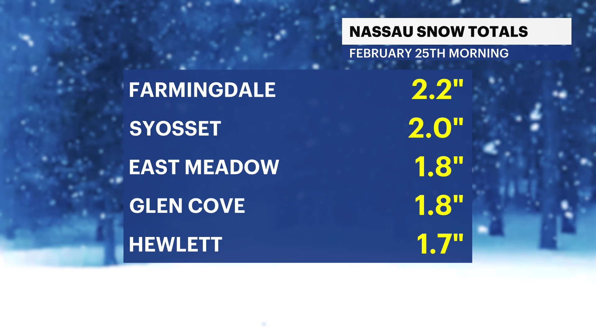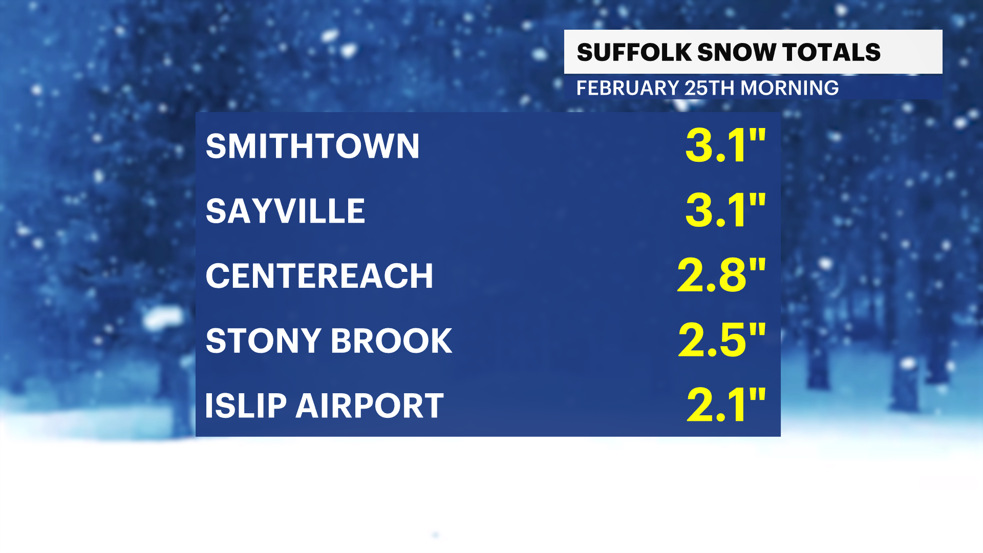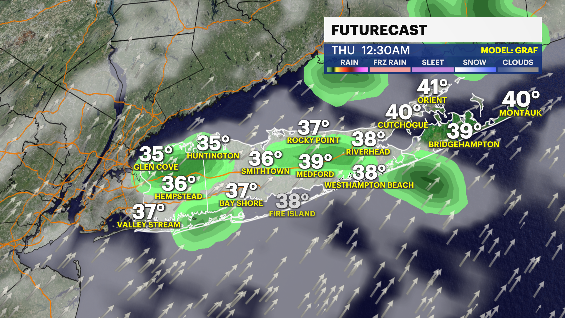 TODAY: While most of Long Island is likely to stay dry, a few spotty snow showers cannot be ruled out in the afternoon and evening. This could cause a spotty coating, but again - most of this snow is likely to remain south of Nassau and Suffolk Counties.