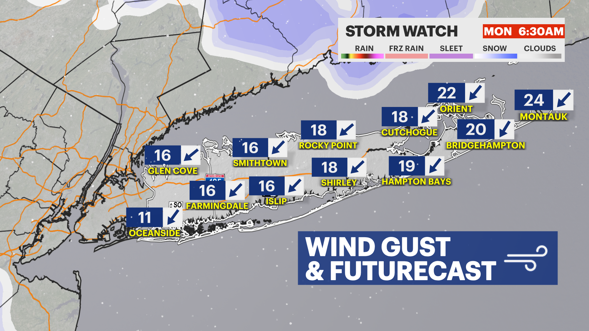BEFORE THE STORM: Today is clear but very cold. The record lowest high temperature for the date is 19F in Islip. Our forecast high for today is only 18 degrees. Wind chills will make it feel like the single digits all day.