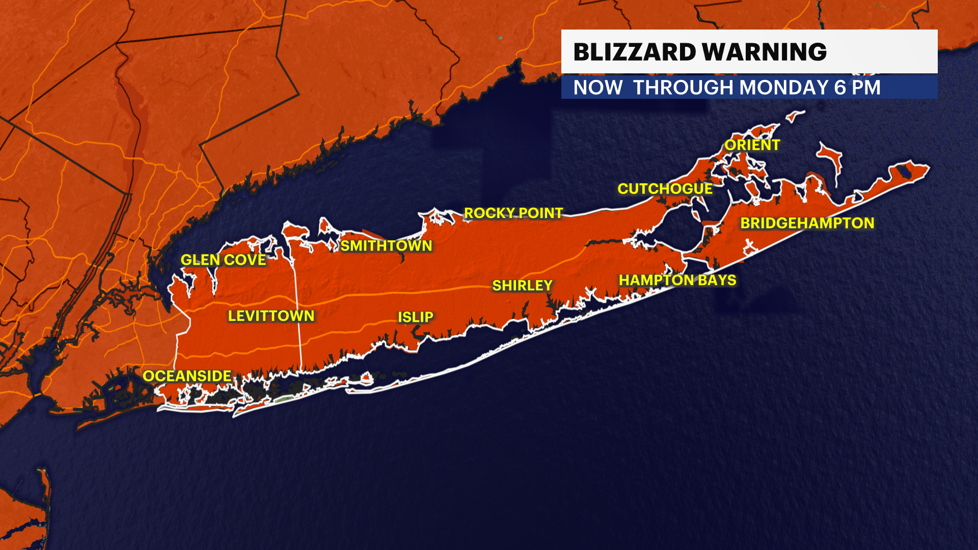 The National Weather Service has issued a blizzard warning for Long Island which is now in effect through 6 p.m. on Monday.
