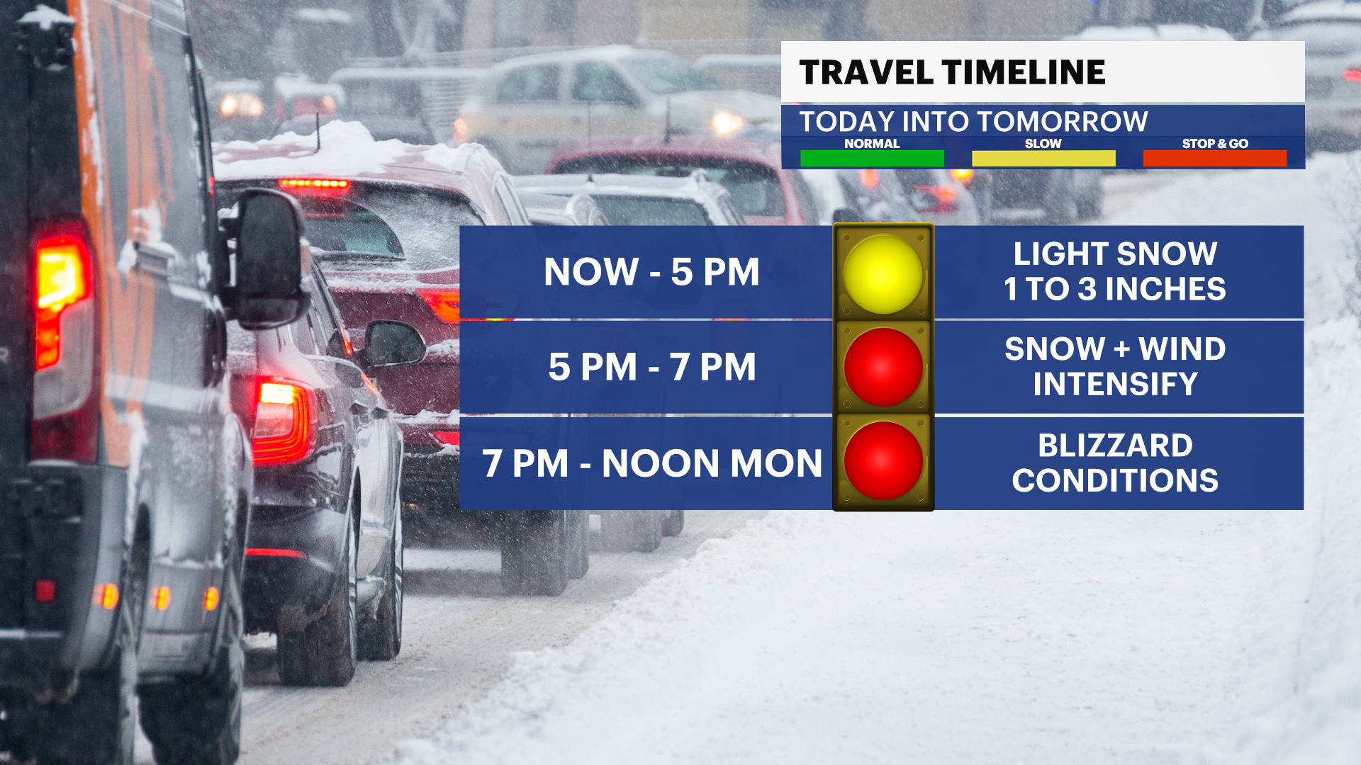 Major travel delays are expected tonight into Tuesday. High snow amounts and blowing and drifting snow as high as 5 feet, it will take time to remove all of the snow to make the roads safe.